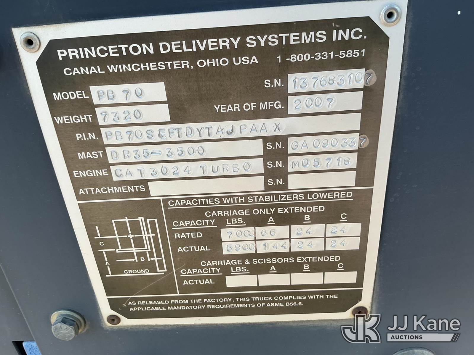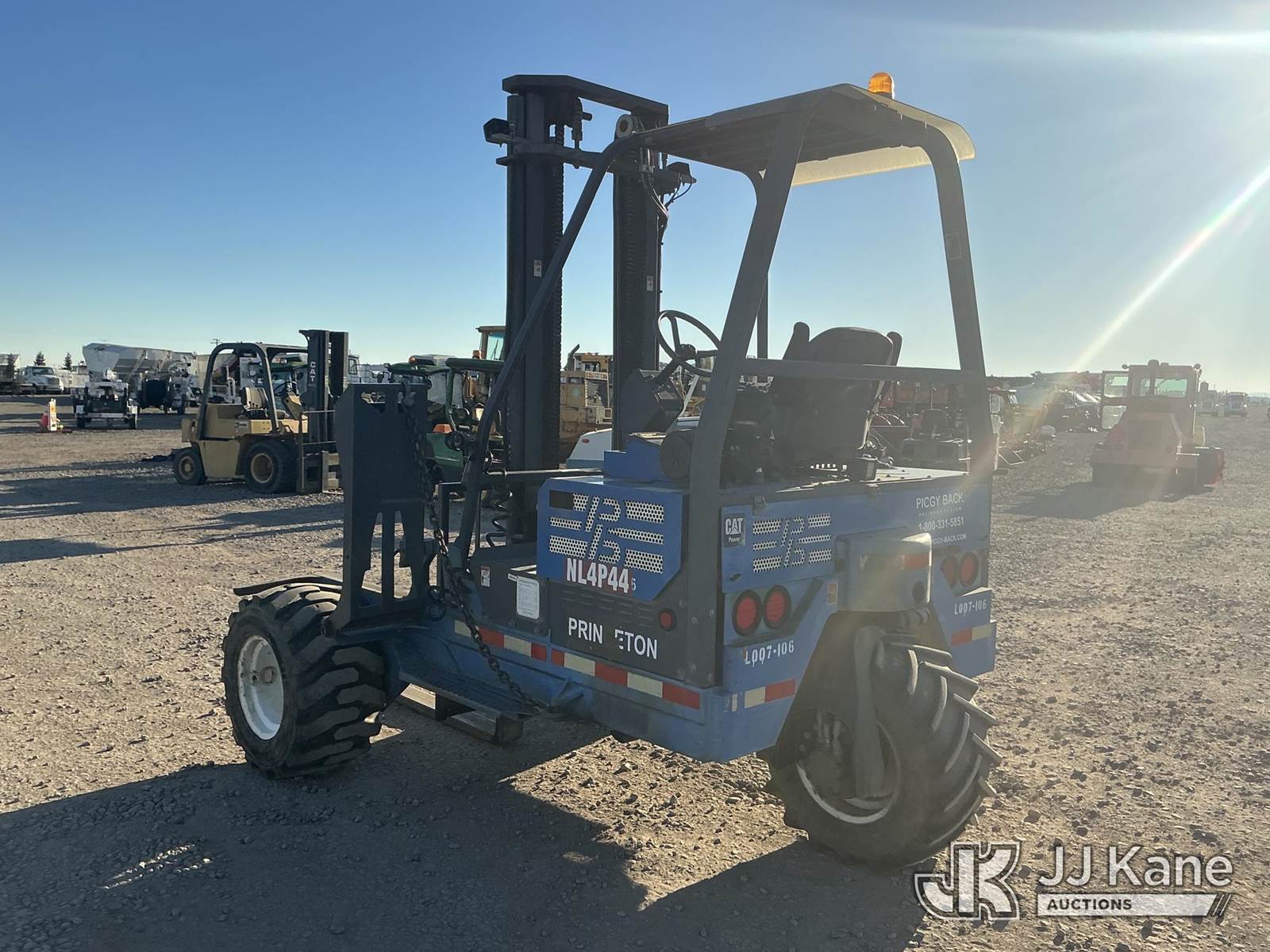 Princeton PB70 Piggy Back Forklift, s/n 137683107, 3-cyl diesel, with 7,000lb cap, (Runs & Operates) (Reads 328 hours) NOTE: This unit is being sold AS IS/WHERE IS via Timed Auction and is located in Dixon, CA. Inspection & preview days for this unit are the 2 business days prior to the first day of items closing for this auction, item is located at 8668 Sparling Ln Dixon, CA 95620 and hours of operations are 8a-4p. For pre-sale questions, please contact JJ Kane Staff at (707) 678-8060 (dixon@jjkane.com). Dealer License Number 45696. (Buyer is responsible for removal. Assistance by consignor or JJ Kane Auctions is not assured.)
