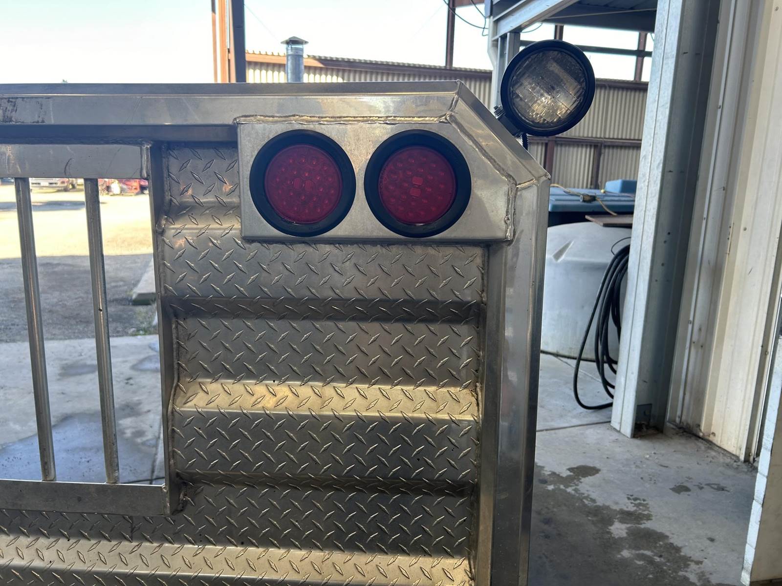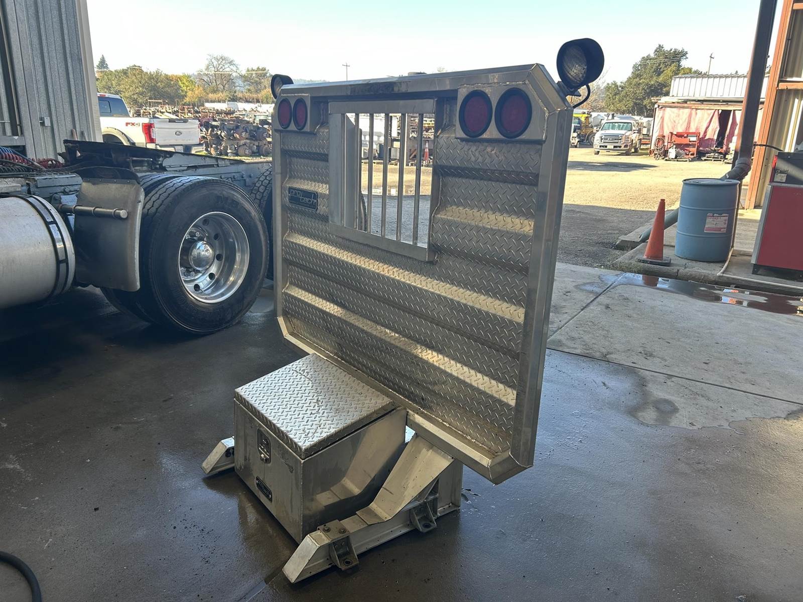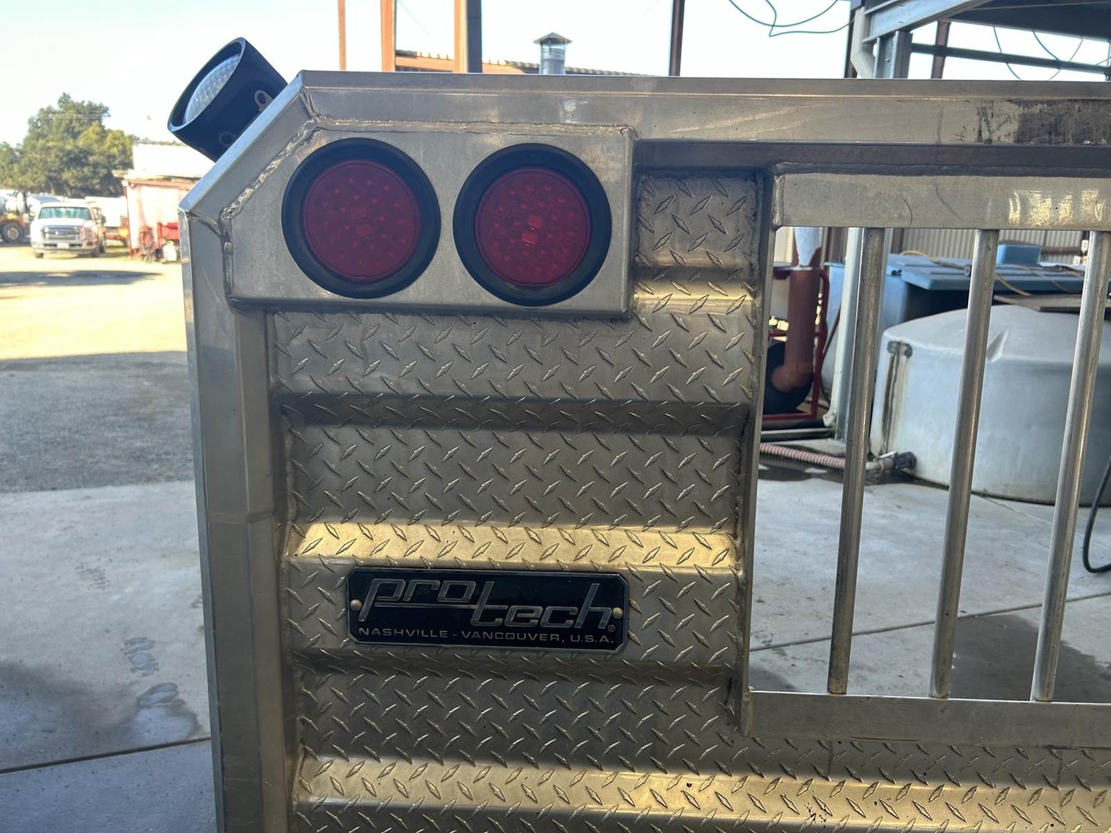Polished Aluminum Tube/Diamond Plate Construction, 65" H, 70" W, ProTech 20-2401 19Hx25Dx24L Aluminum Box Between Rails, 4" Press Fit Light Housings w/ (4) Round Red LED Lights, (2) Adjustable Load Lights, Includes Mounting Kit...