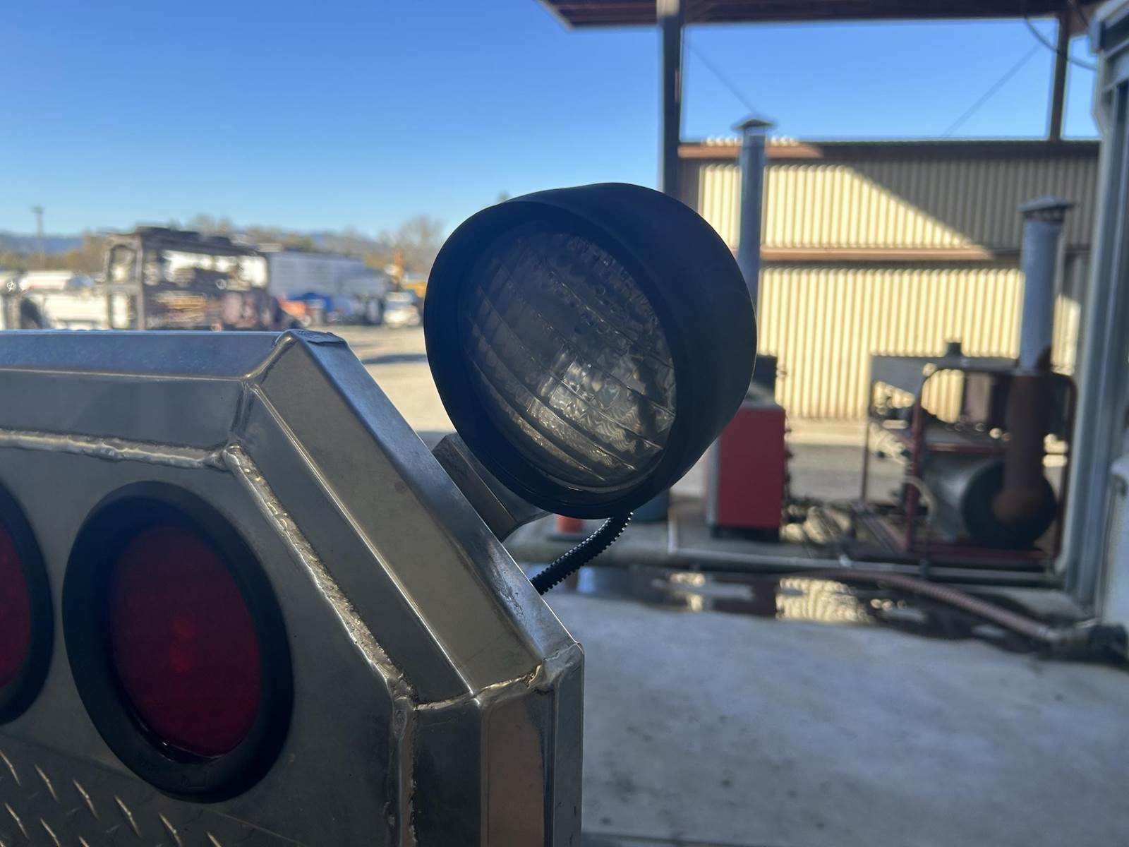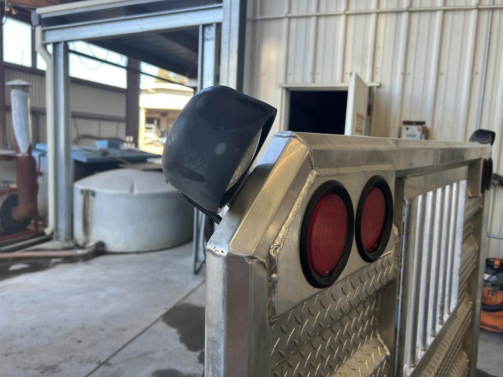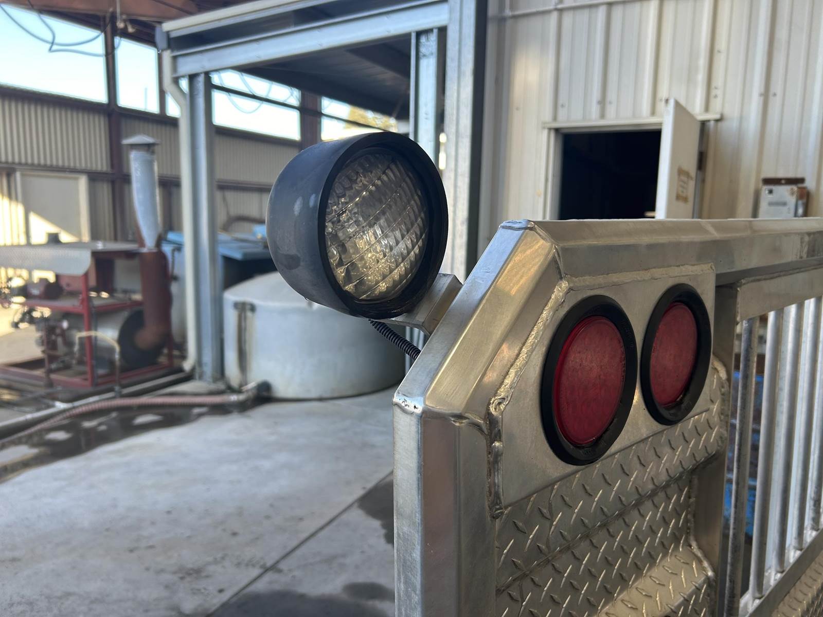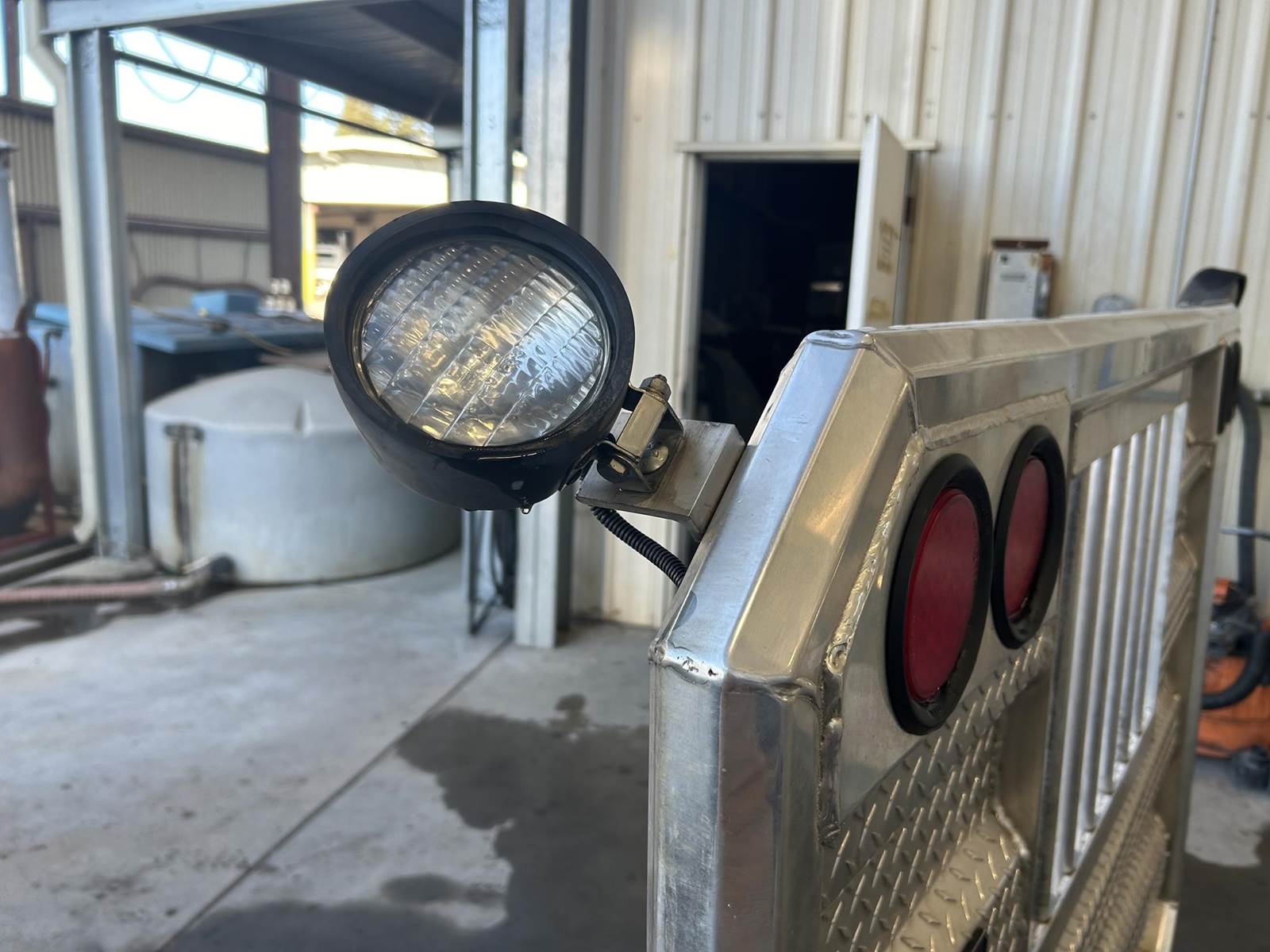 Polished Aluminum Tube/Diamond Plate Construction, 65" H, 70" W, ProTech 20-2401 19Hx25Dx24L Aluminum Box Between Rails, 4" Press Fit Light Housings w/ (4) Round Red LED Lights, (2) Adjustable Load Lights, Includes Mounting Kit...