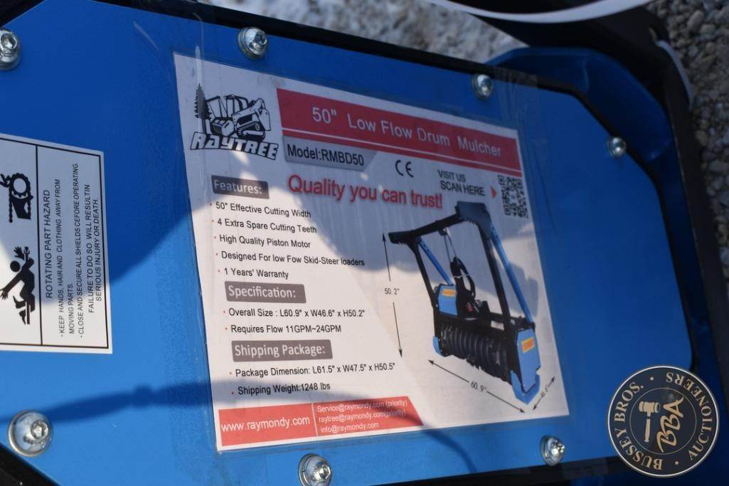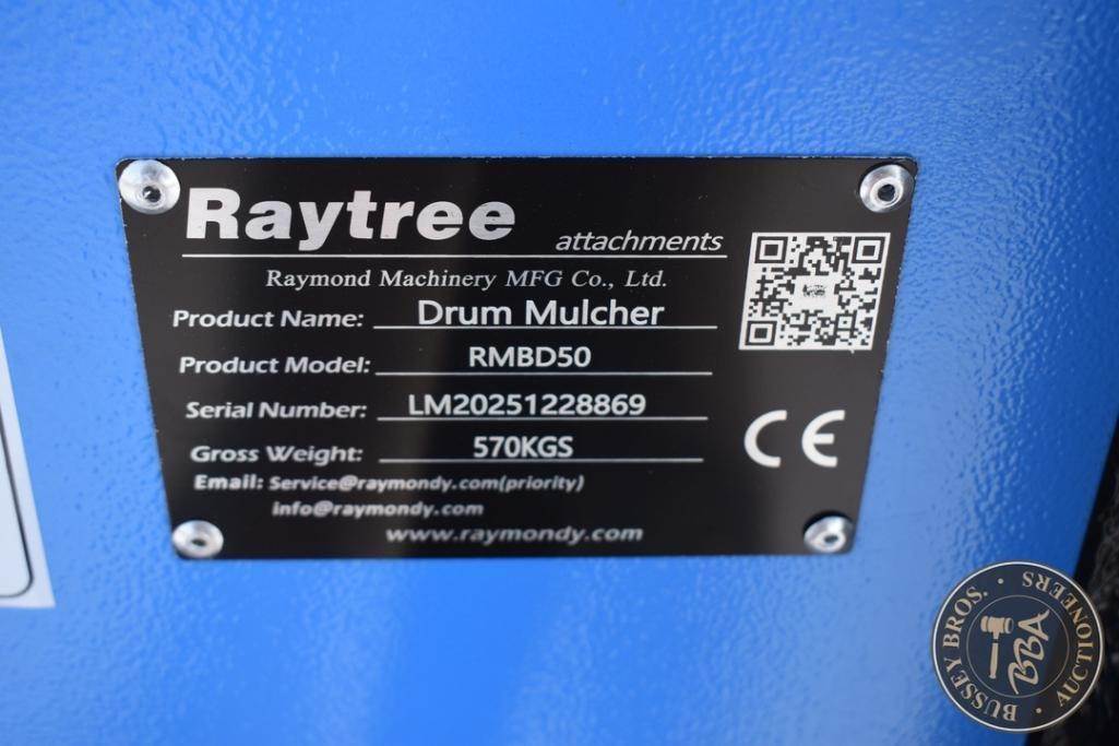 Raytree Excavator Mulching Head Skid steer mount, push bar, 50 inch wide, SN#LM20251228869, NEW/UNUSED
