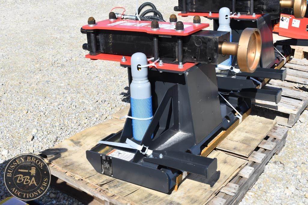 Raytree Post Pounder Attachment Skid Steer Mount, hydraulic, charge cylinder, toolbox, NEW/UNUSED
