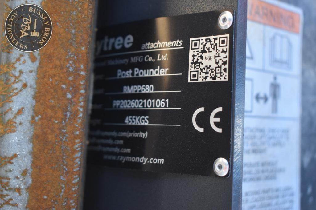 Raytree Post Pounder Attachment Skid Steer Mount, hydraulic, charge cylinder, toolbox, SN#PP202602101061, NEW/UNUSED