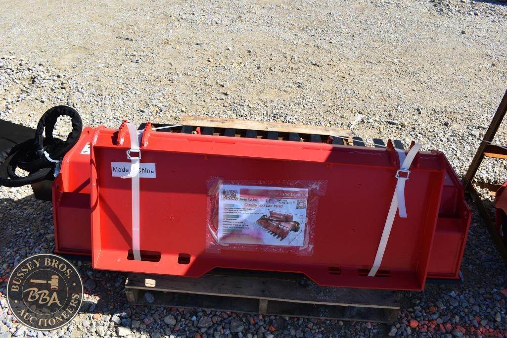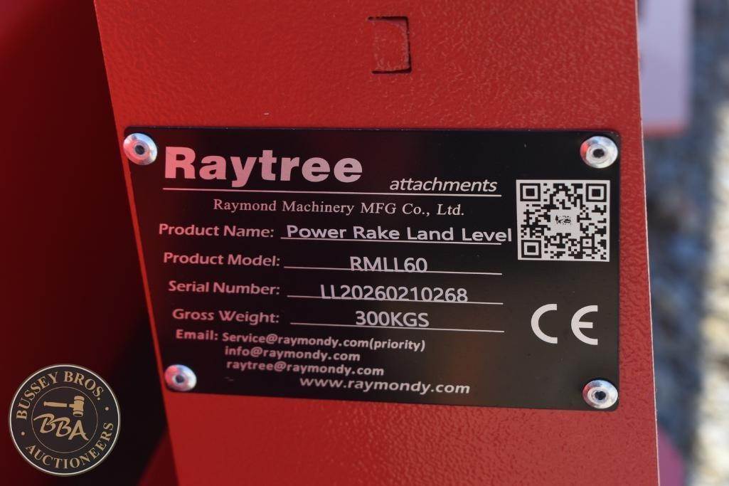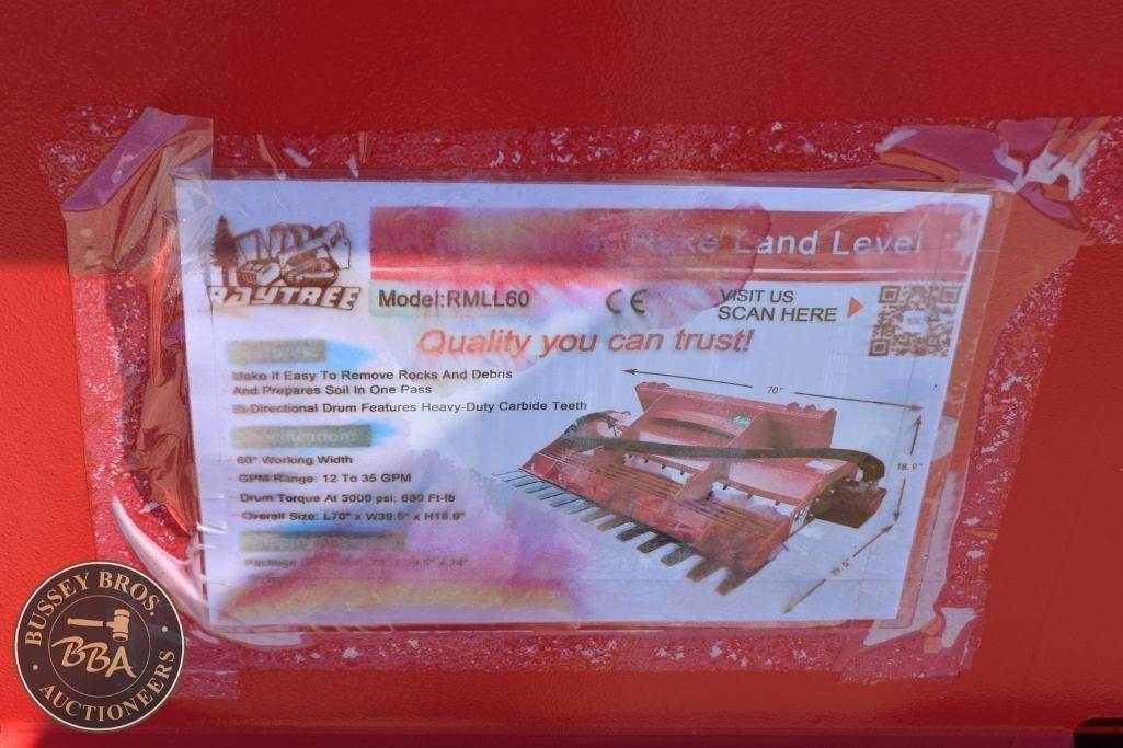 Raytree Power Rake Land Level Attachment Skid Steer Mount, hydraulic, 72in working width, bi-directional drum, SN#LL20260210268, NEW/UNUSED