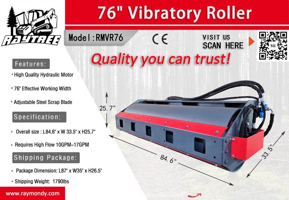 Raytree RMVR76 76" Vibratory Roller Hydraulic Skid Steer Attachment bidadoo -New