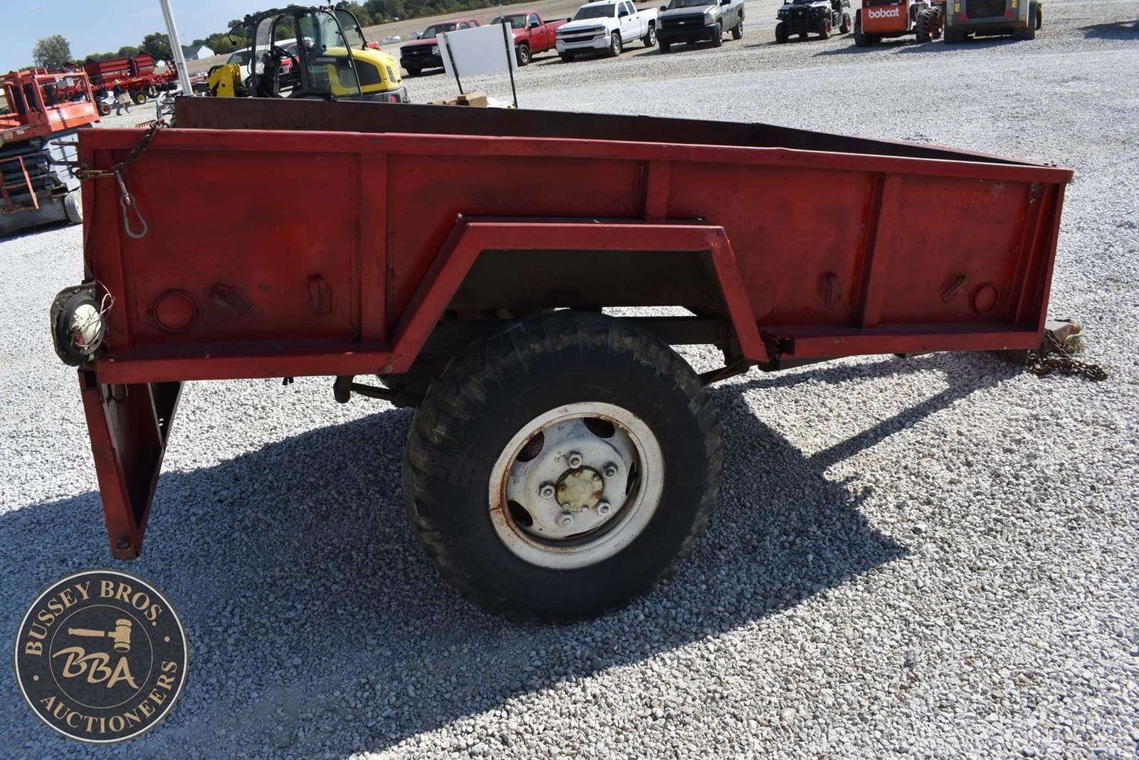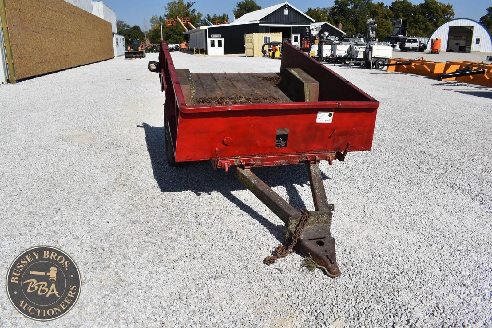 Red Utility Trailer, Single Axle, Pintle Hitch, Approximately 96" Length x 72"