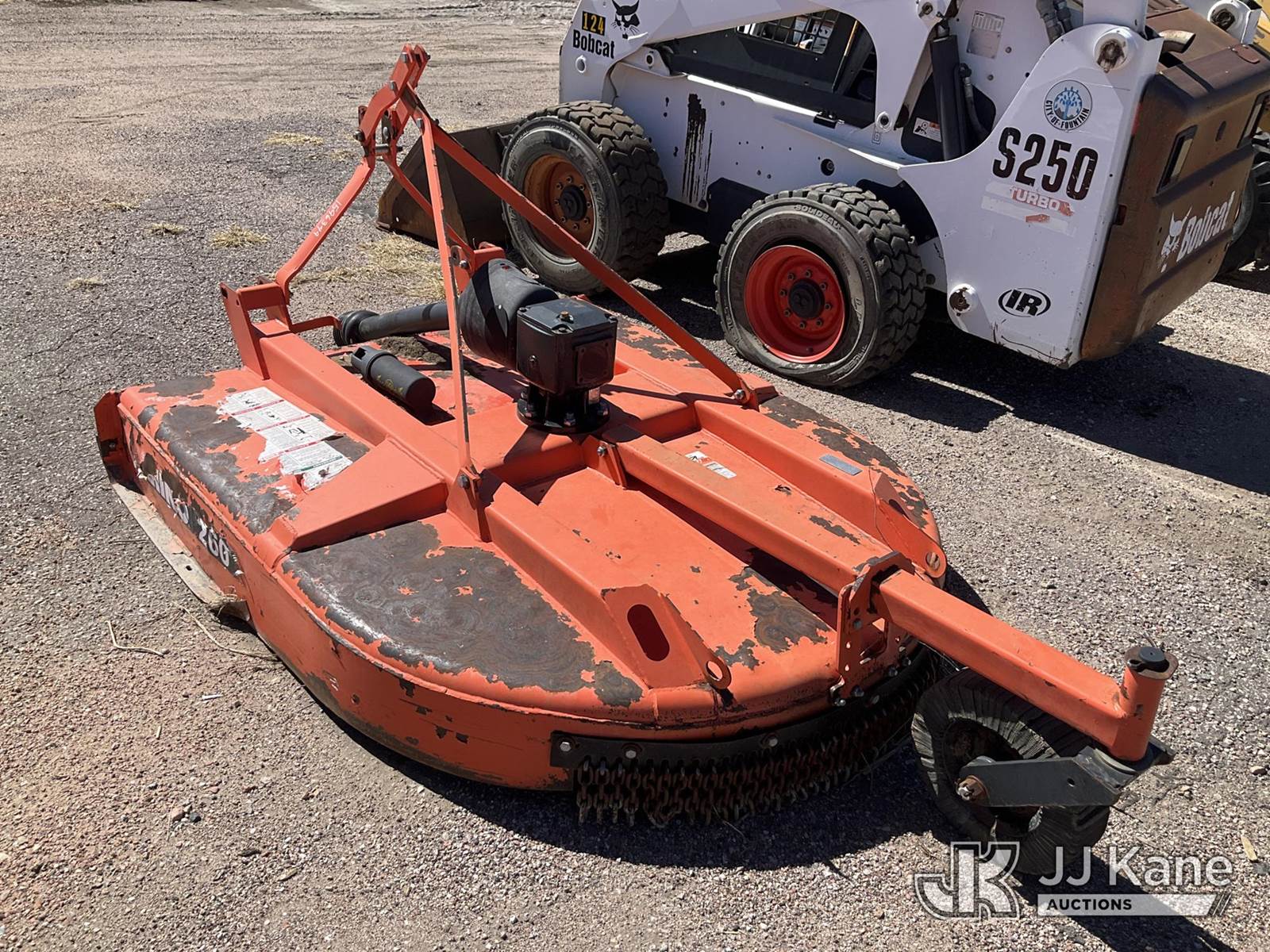 Rhino Ag 260 brush hog, model number 10436, 2 1/2” cut capacity, unobstructed underside deck, domed deck design,60” cutting width, 2” output shaft diameter) (Municipality Owned & Maintained (Operates) NOTE: This unit is being sold AS IS/WHERE IS via Timed Auction and is located in Fountain, CO. For more information & removal arrangements please contact John Larkin @ 720-390-9897. (Buyer is responsible for removal. Assistance by consignor or JJ Kane Auctions is not assured.)