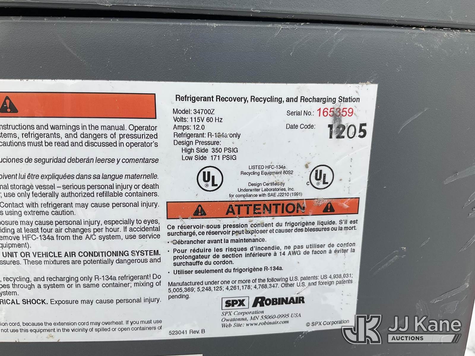 Robinair 34700z A/C Recharge Machine (Untested By Auctioneer) NOTE: This unit is being sold AS IS/WHERE IS via Timed Auction and is located in Shrewsbury, MA. Inspection & preview days for this unit are the 2 business days prior to the first day of items closing for this auction, item is located at 11 Fortune Blvd Shrewsbury, MA 01545 and hours of operations are 8a-4p. For pre-sale questions, please contact Rob Gifford @ (508) 864-4126. (Buyer is responsible for removal. Assistance by consignor or JJ Kane Auctions is not assured.)