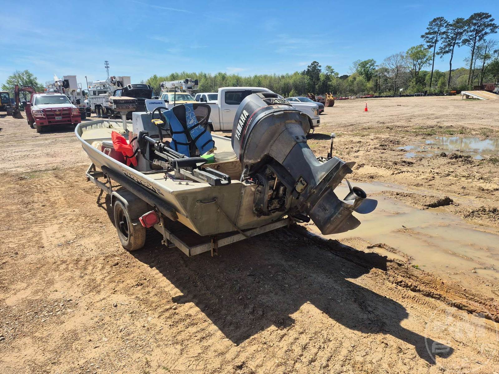 JOHN BOAT, YAMAHA V4 1.7L 130 ENGINE, ENGINE SN# 6E5L-352331, ***HAS OIL LEAK***