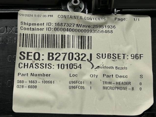 S60-1663-100661 TRIM-HEADER BEZEL, LT GRAY
