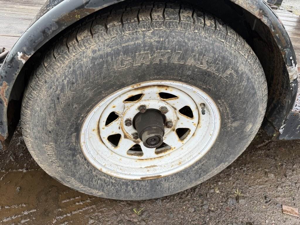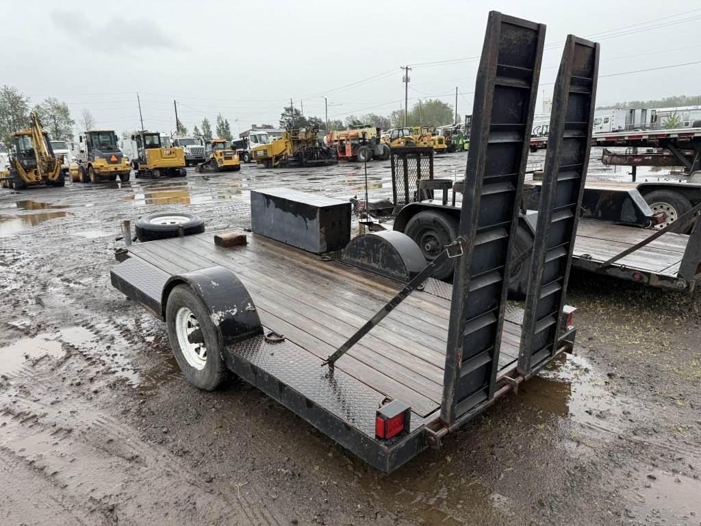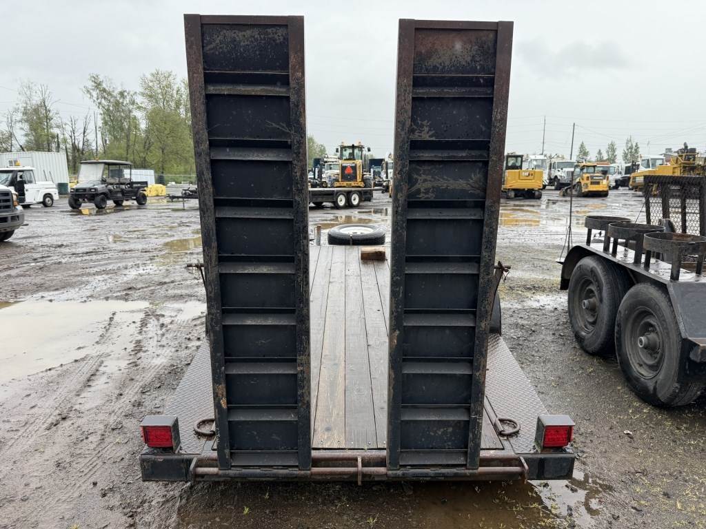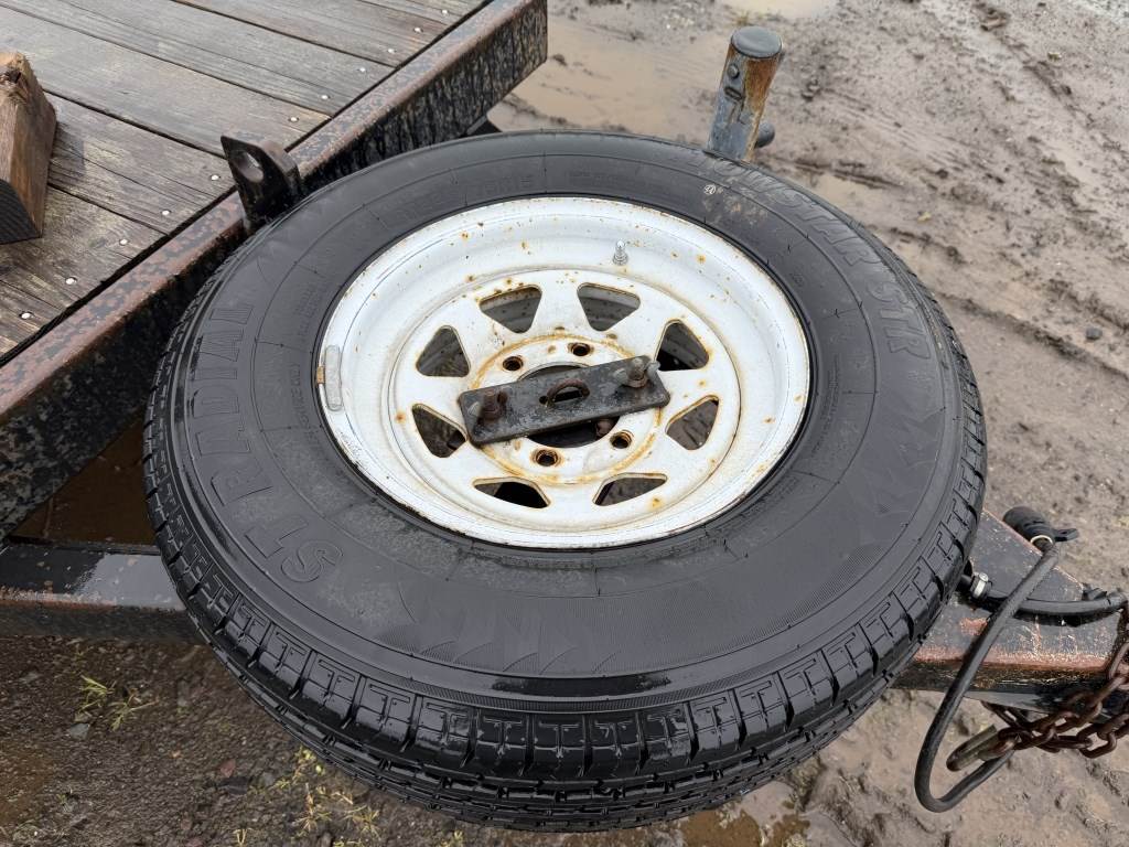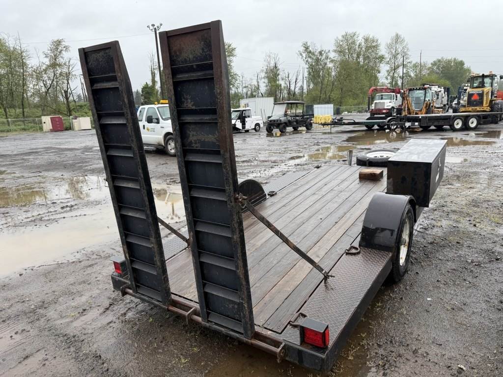 Location Washougal WA ***End-User Consignment*** Wood deck, Fulton ball hitch, Bulldog trailer jack, storage compartment, 2 ramps, spare tire, ST225/75R15 tires.