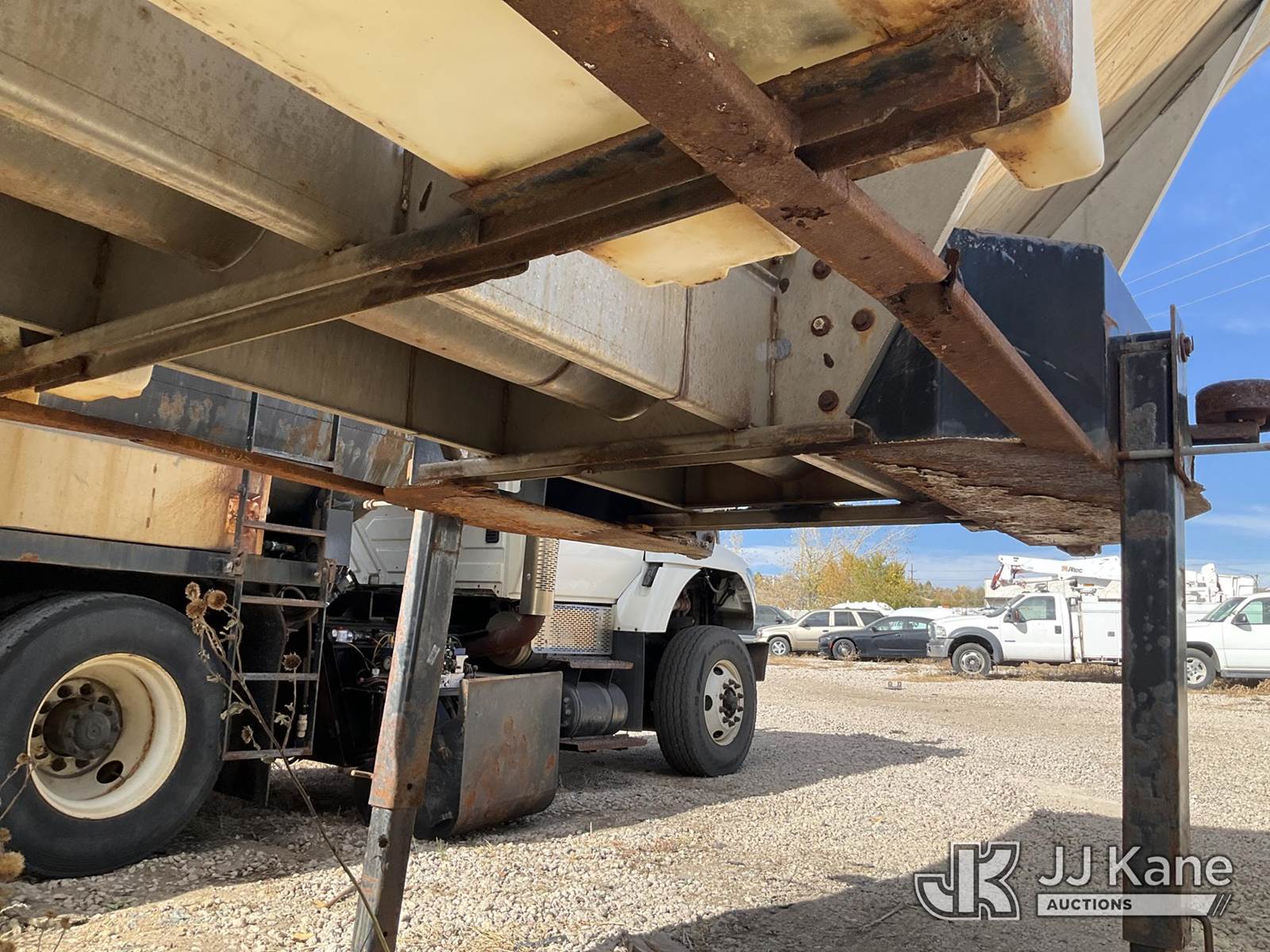 Sander Truck, with Henderson truck mounted sander/spreader, Model WSHX 13x56x304SSxAuger. Serial number WSH-22927. 2 appx 100 gal side tanks., (Operates. No internal cab controls included.) NOTE: This unit is being sold AS IS/WHERE IS via Timed Auction and is located in Colorado Springs, CO. For more information & removal arrangements please contact John Larkin @ John.larkin@jjkane.com (Buyer is responsible for removal. Assistance by consignor or JJ Kane Auctioneers is not assured.)