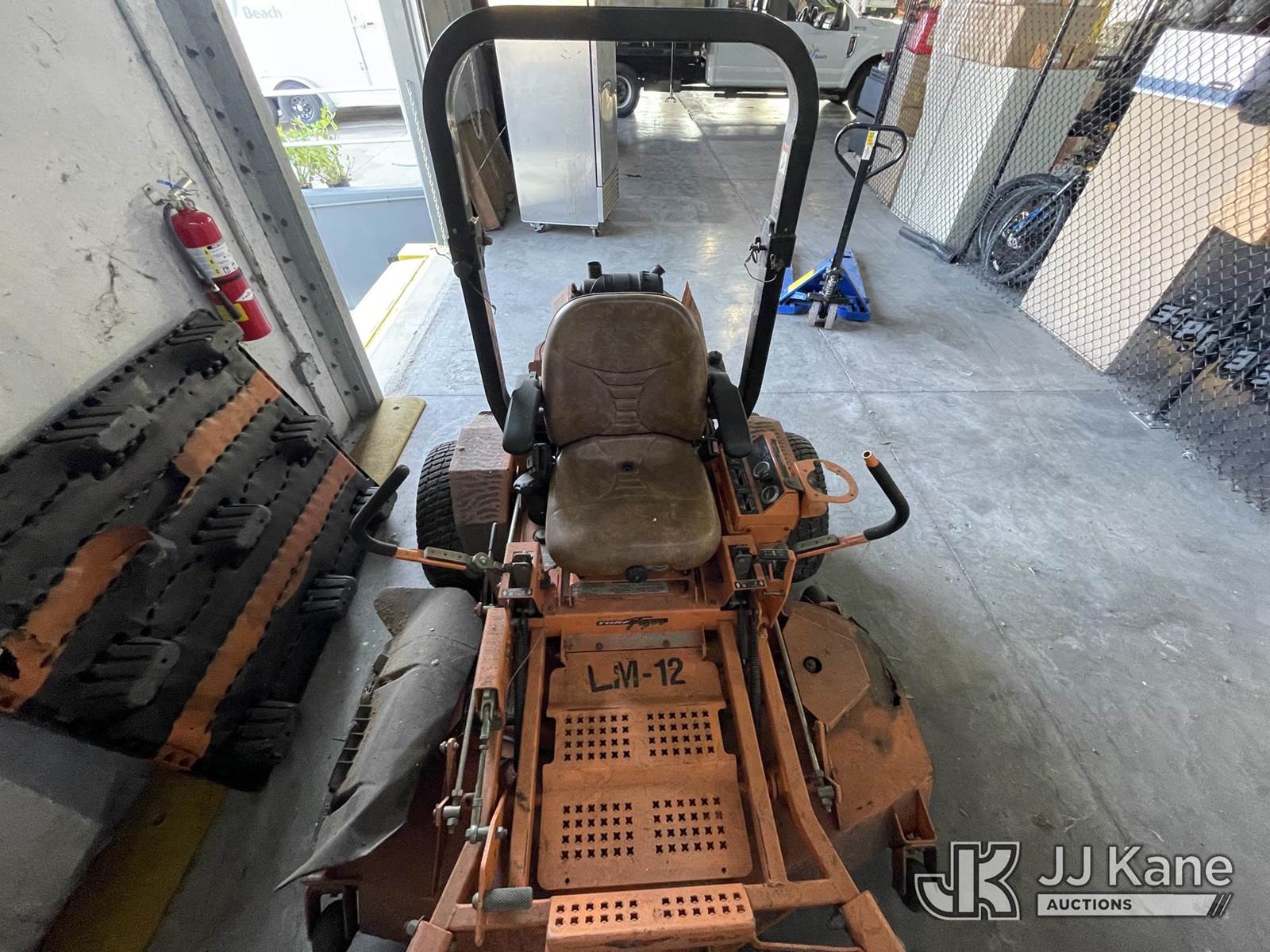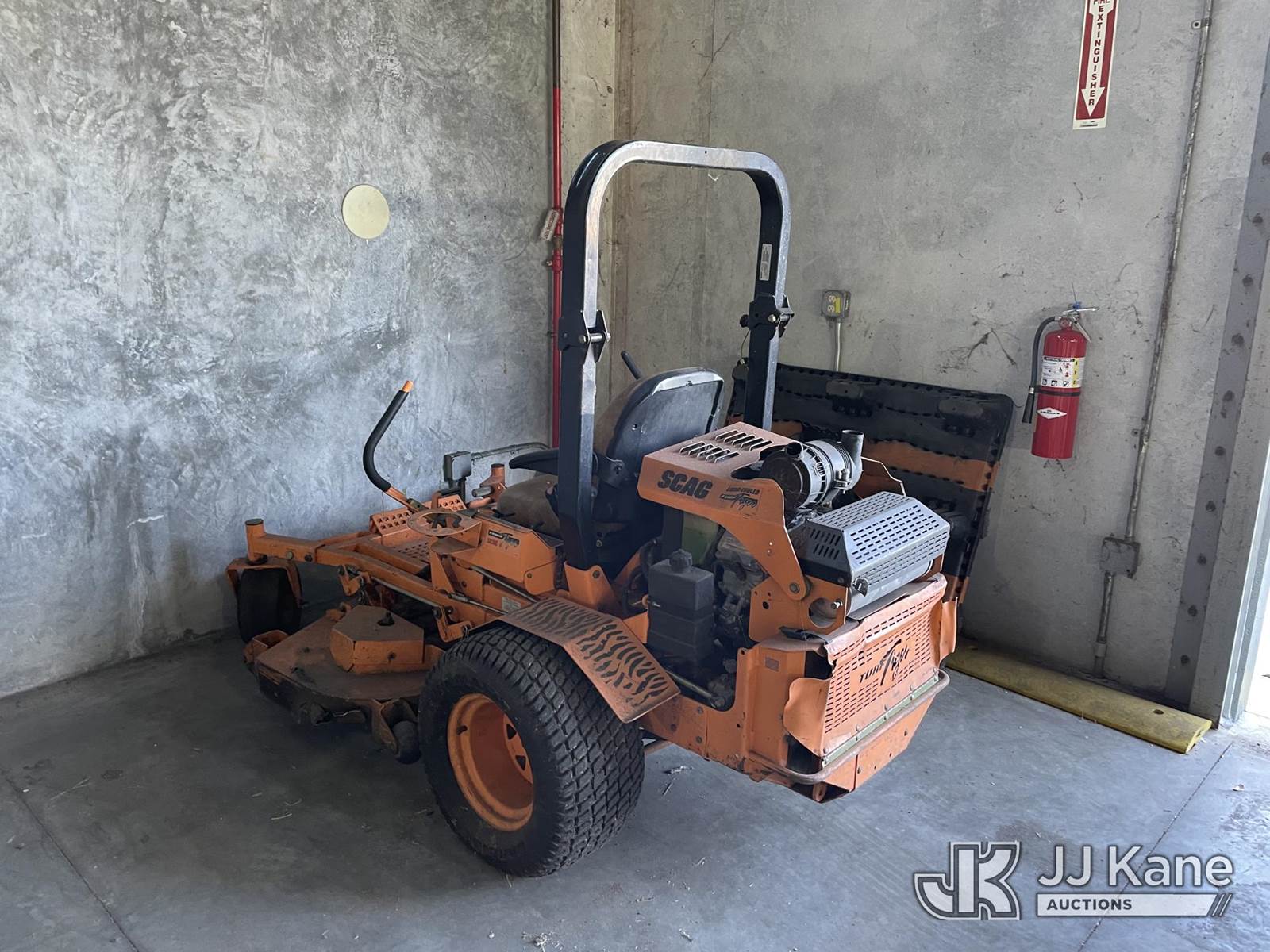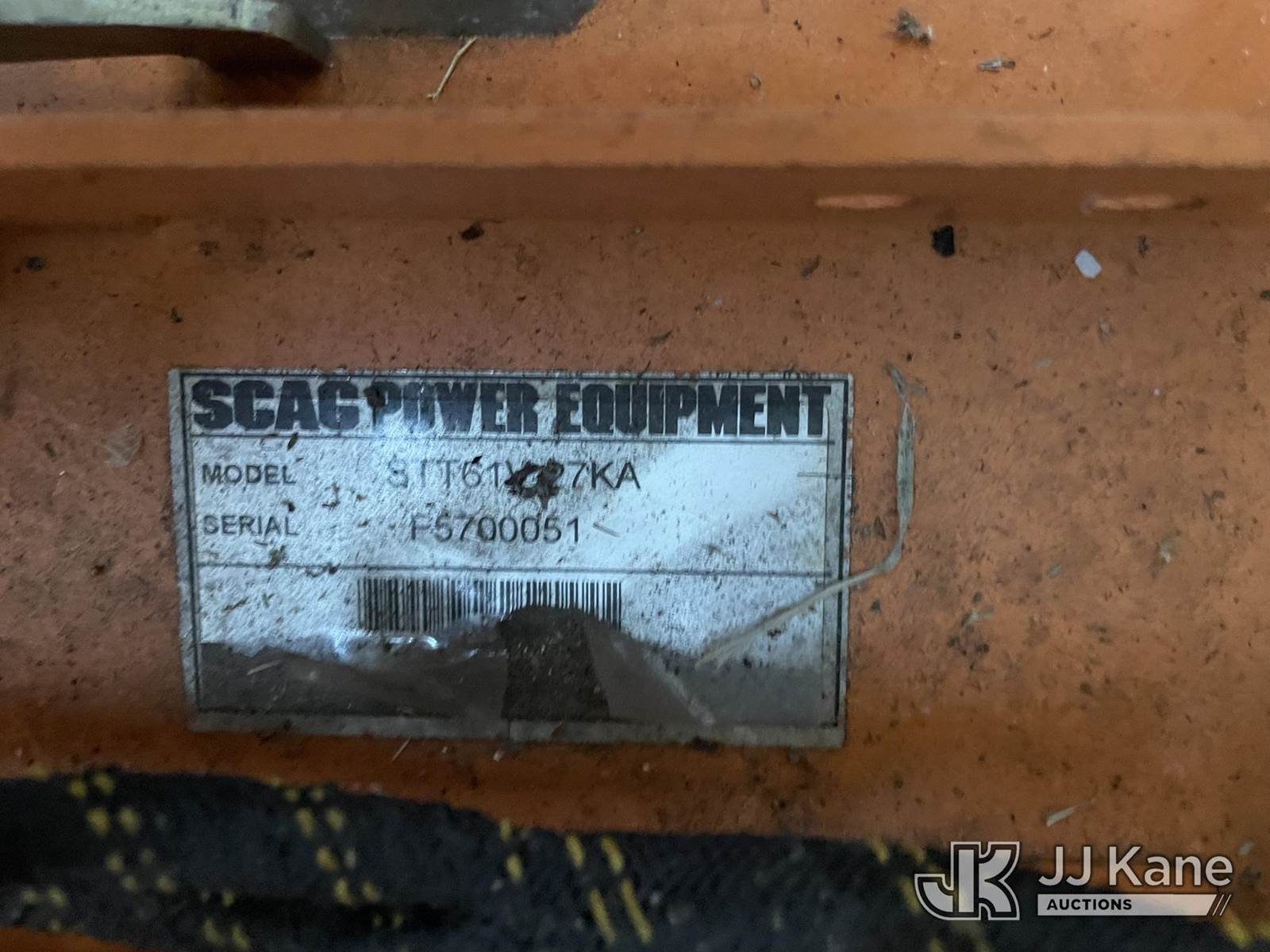 Scag 61" s/n F5700051, Kawasaki gas, (Runs & Moves) (Deck Damaged, HR Meter Not Working, Jump To Start, Gas Has Been Removed) NOTE: This unit is being sold AS IS/WHERE IS via Timed Auction and is located in Riviera Beach, FL. For pre-sale questions or to schedule an inspection, please call Gregg Martini @ 561-519-5775. Removals require 24-hr Notice by Appointment Only, Buyer/Hauler must present copy of Paid-in-Full JJ Kane Release Form upon arrival. Purchaser acknowledges ALL lots must be removed within 10 business days of Auction, or a towing & storage fee may be incurred. (Buyer is responsible for removal. Assistance by consignor or JJ Kane Auctioneers is not assured.)