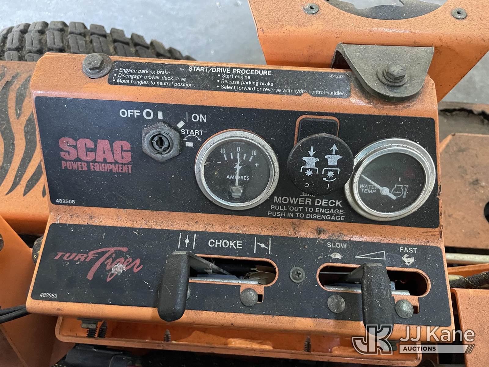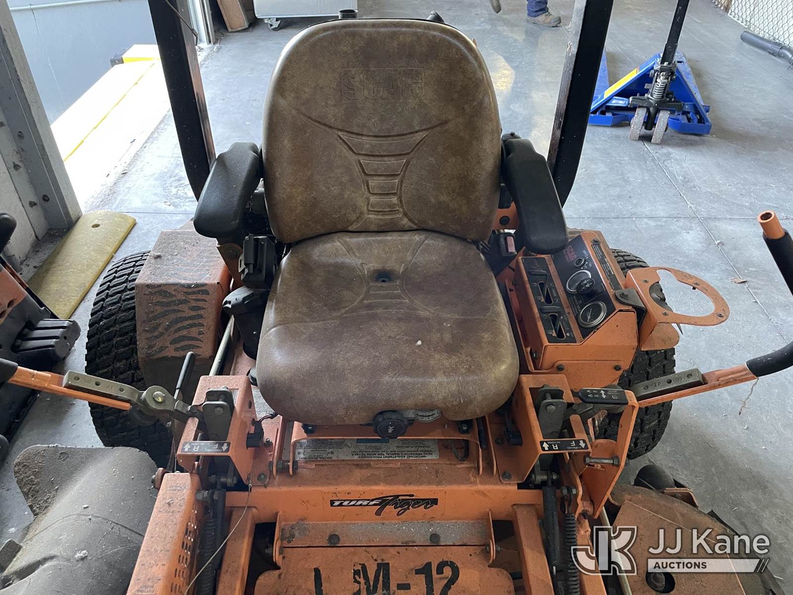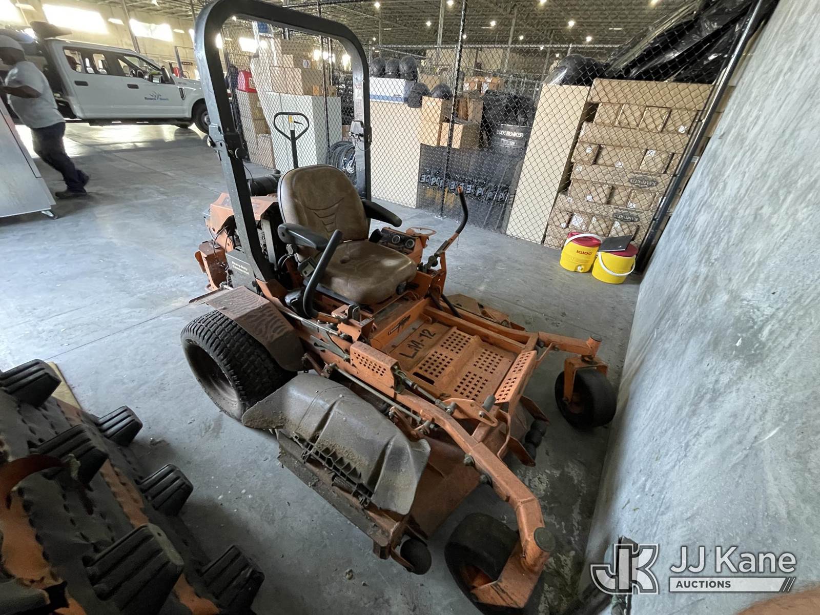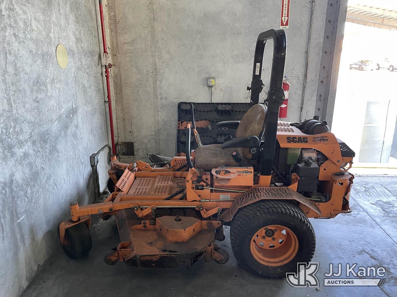 Scag 61" s/n F5700051, Kawasaki gas, (Runs & Moves) (Deck Damaged, HR Meter Not Working, Jump To Start, Gas Has Been Removed) NOTE: This unit is being sold AS IS/WHERE IS via Timed Auction and is located in Riviera Beach, FL. For pre-sale questions or to schedule an inspection, please call Gregg Martini @ 561-519-5775. Removals require 24-hr Notice by Appointment Only, Buyer/Hauler must present copy of Paid-in-Full JJ Kane Release Form upon arrival. Purchaser acknowledges ALL lots must be removed within 10 business days of Auction, or a towing & storage fee may be incurred. (Buyer is responsible for removal. Assistance by consignor or JJ Kane Auctioneers is not assured.)