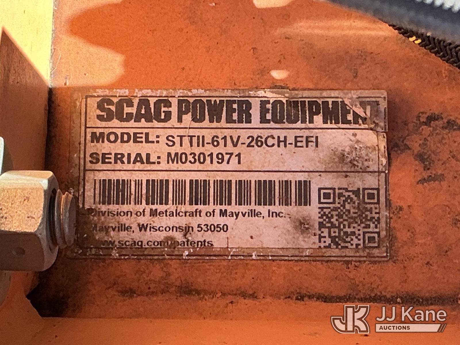 Scag Turf Tiger 2 Lawn Mower, s/n M0301971, Kohler Hydrostatic, Gas, with 61in deck, ROPS post, (Runs, Moves & Operates) (Jump To Start, Runs On Jump Box ) (Reads 2,644 hours) NOTE: This unit is being sold AS IS/WHERE IS via Timed Auction and is located in China Grove, NC. Inspection & preview days for this unit are the 2 business days prior to the first day of items closing for this auction, item is located at 820 E NC Hwy 152 China Grove, NC 28023 and hours of operations are 8a-4p. For pre-sale questions, please contact Office Staff @ (704) 674-1113. (Buyer is responsible for removal. Assistance by consignor or JJ Kane Auctions is not assured.)