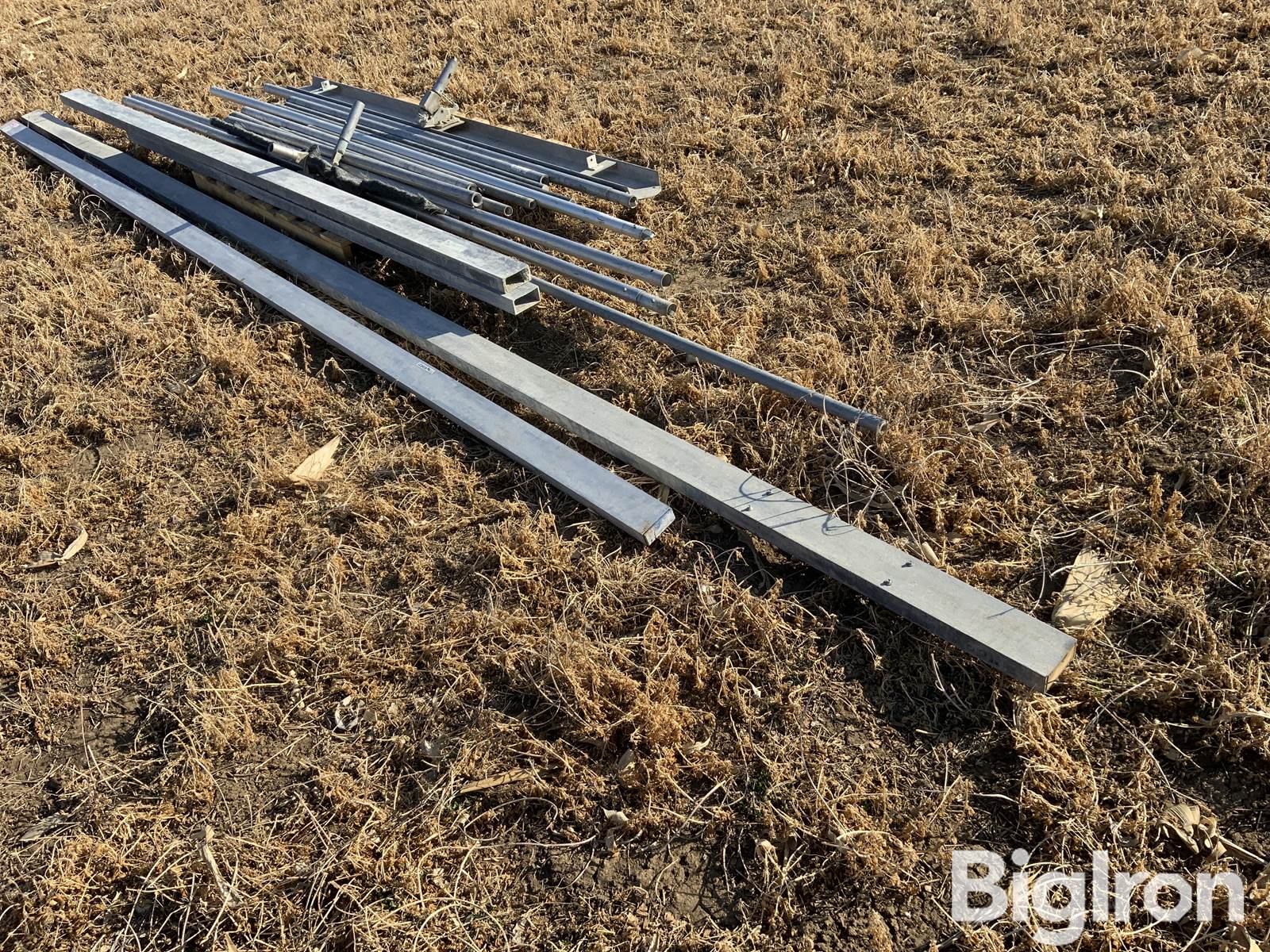 Screed Tools, 5’ concrete broom, 8’ straight edge bar, Aluminum pieces ranging from approximately 140”-19’ long, all measurements are approximate, bidders should inspect the lot