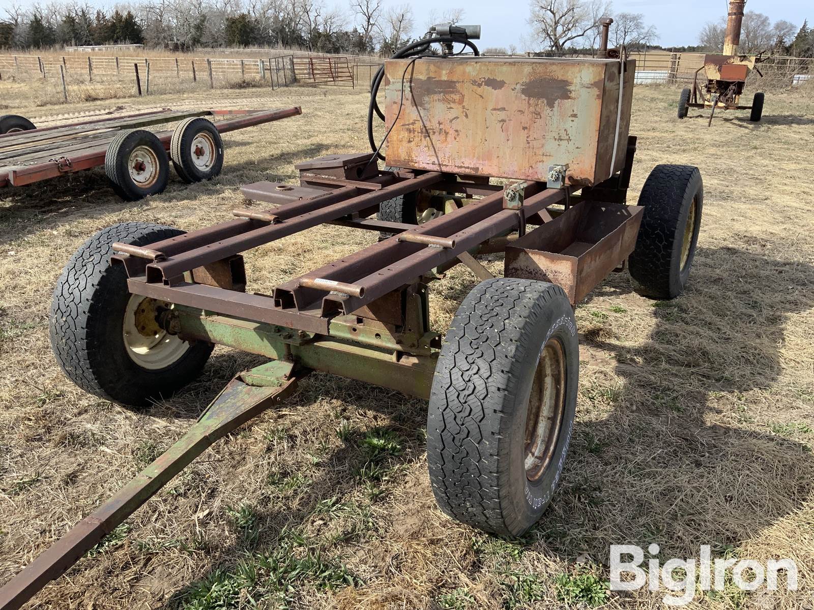 Shop Built Fuel Trailer, On John Deere Running Gear, 16” Tires, 110 Gallon Fuel Tank, pump and nozzle, 2” ball hitch