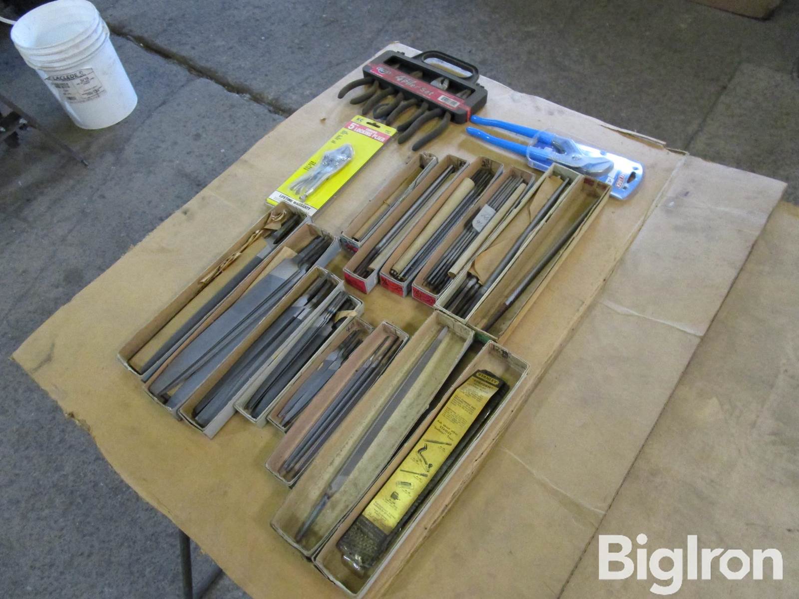 Shop Tools, Unused, KC 5" Vise Grip, 10" Channel Locks, Sunex 4 Plier Set, (1) of 10" Slim Taper 3 Sided File, (3) of 7" Slim Taper File 3 Sided, (4) of 4" Flat Files, (6) of 6" Knife Smooth files, (6) of 8" Knife Smooth Files, (6) of 10" Knife Smooth files, (9) of 12" Knife Smooth Files, (7) of 10" Round Smooth, (11) of 7/32" Chain saw Files, (15) of 3/16" Chain Saw Files, (8) of 1/4" Round Smooth, (11) of 5/32" Chain Saw Files, (7) of 1/8" Smooth File