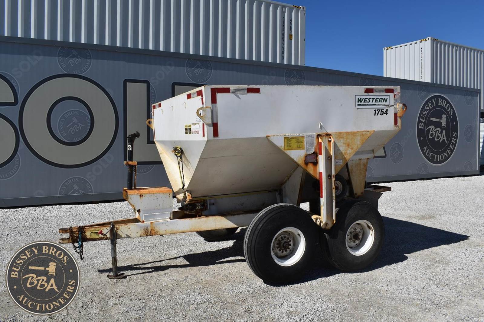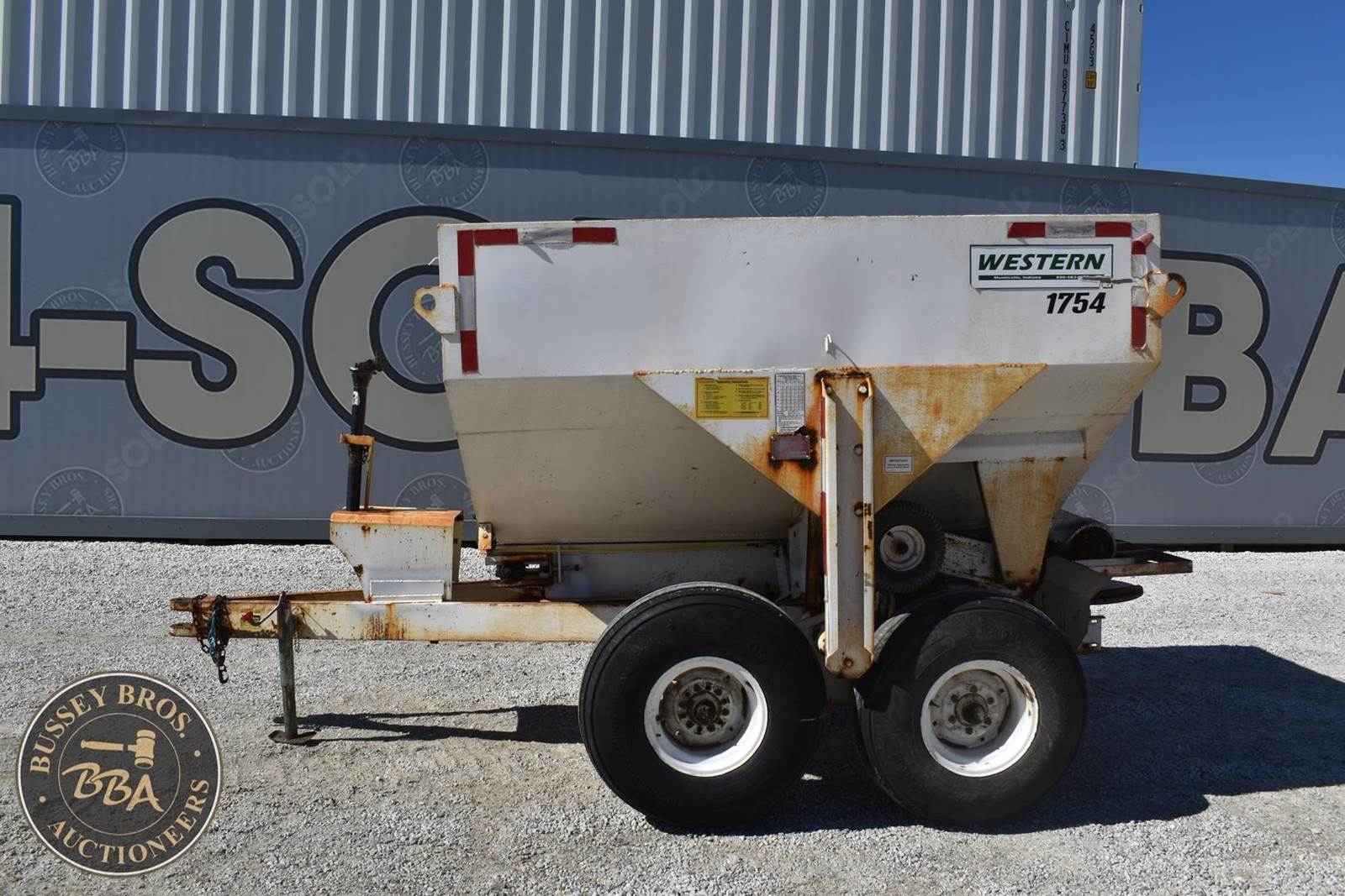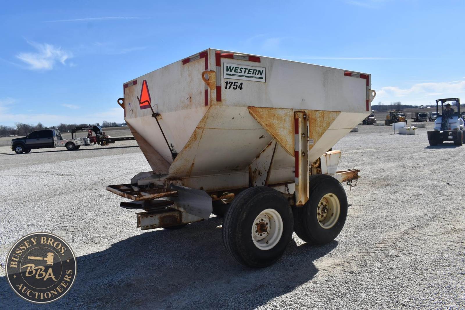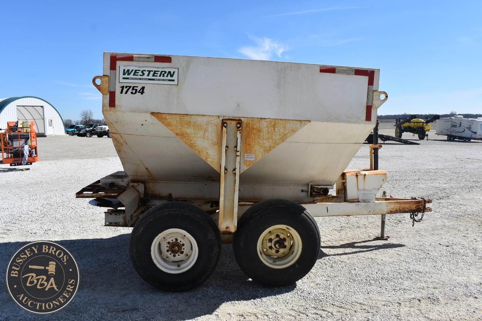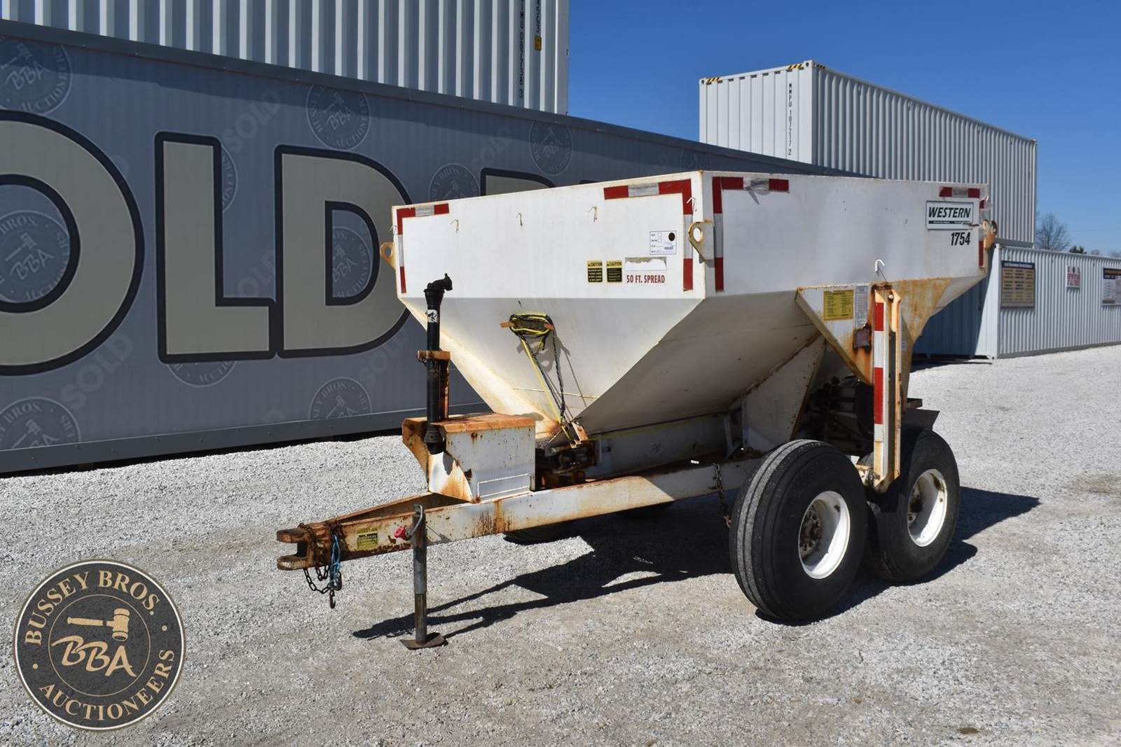 Western 1754 5 ton Fertilizer Spreader, Tandem axle, Ground Drive unload, 50ft spread width, manual gate,
