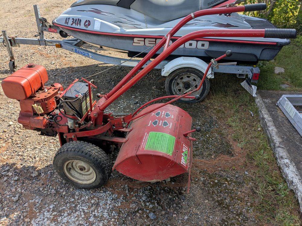 Items include 2024 GF Industry hydraulic mini excavator; 1992 28' work barge; 2017 Ram 2500 power wagon; 1997 Bobcat 751 skid steer; 14' dump trailer; 2000 dual axle utility trailer; 2010 BMW 528i; John Deere X320 garden tractor; Troy-Bilt Rototiller; Yard Machine Gold snow blower; manual tire changer; wooden Adirondack chairs; Gladiator storage cabinets/contents; tow-behind yard rake; Jonson 6hp boat motor; 2003 Artic Cat T660 turbo snowmobile; quick attach pallet forks; Fonney welder; Festool Cleantec tool set & more. Items are located in Long Lake, NY.