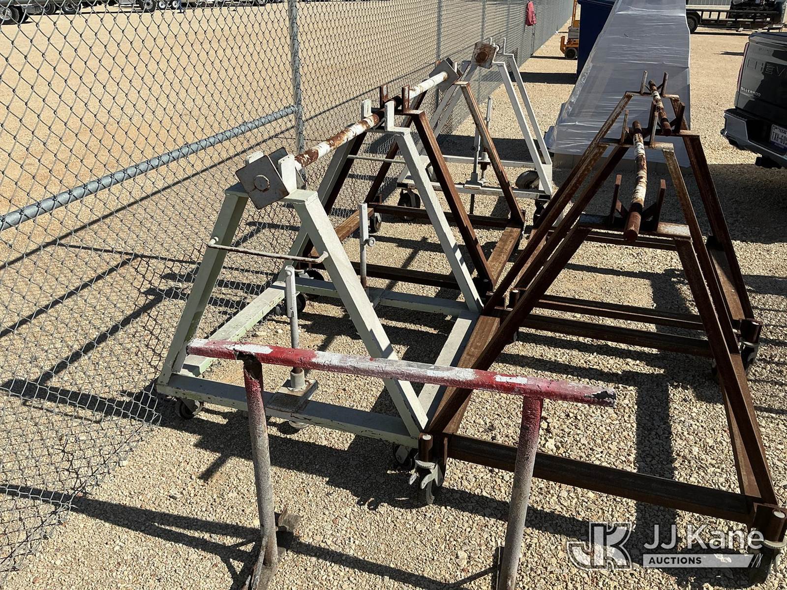 Single Reel Holders and stand, 6 pieces total) (Sold Together As One Lot), (Buyer Must Take All Pieces) NOTE: This unit is being sold AS IS/WHERE IS via Timed Auction and is located in Marion, TX. Inspection & preview days for this unit are the 2 business days prior to the first day of items closing for this auction, item is located at 3292 S Santa Clara Rd Marion, TX 78124 and hours of operations are 8a-4p. For pre-sale questions, please contact Brian Jarrell @ 210-540-3147. (Buyer is responsible for removal. Assistance by consignor or JJ Kane Auctions is not assured.)