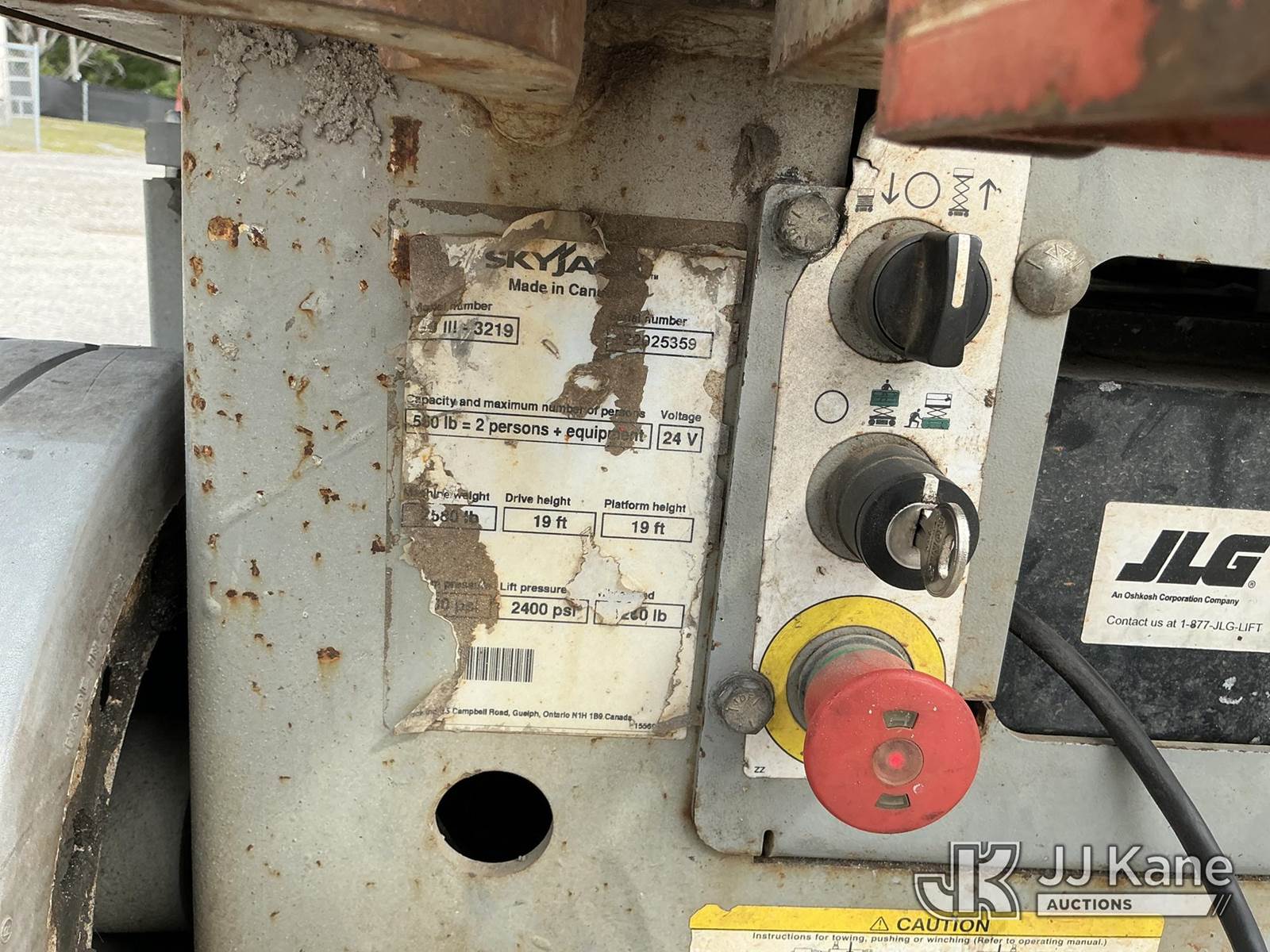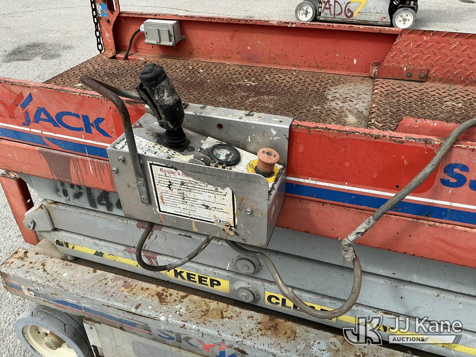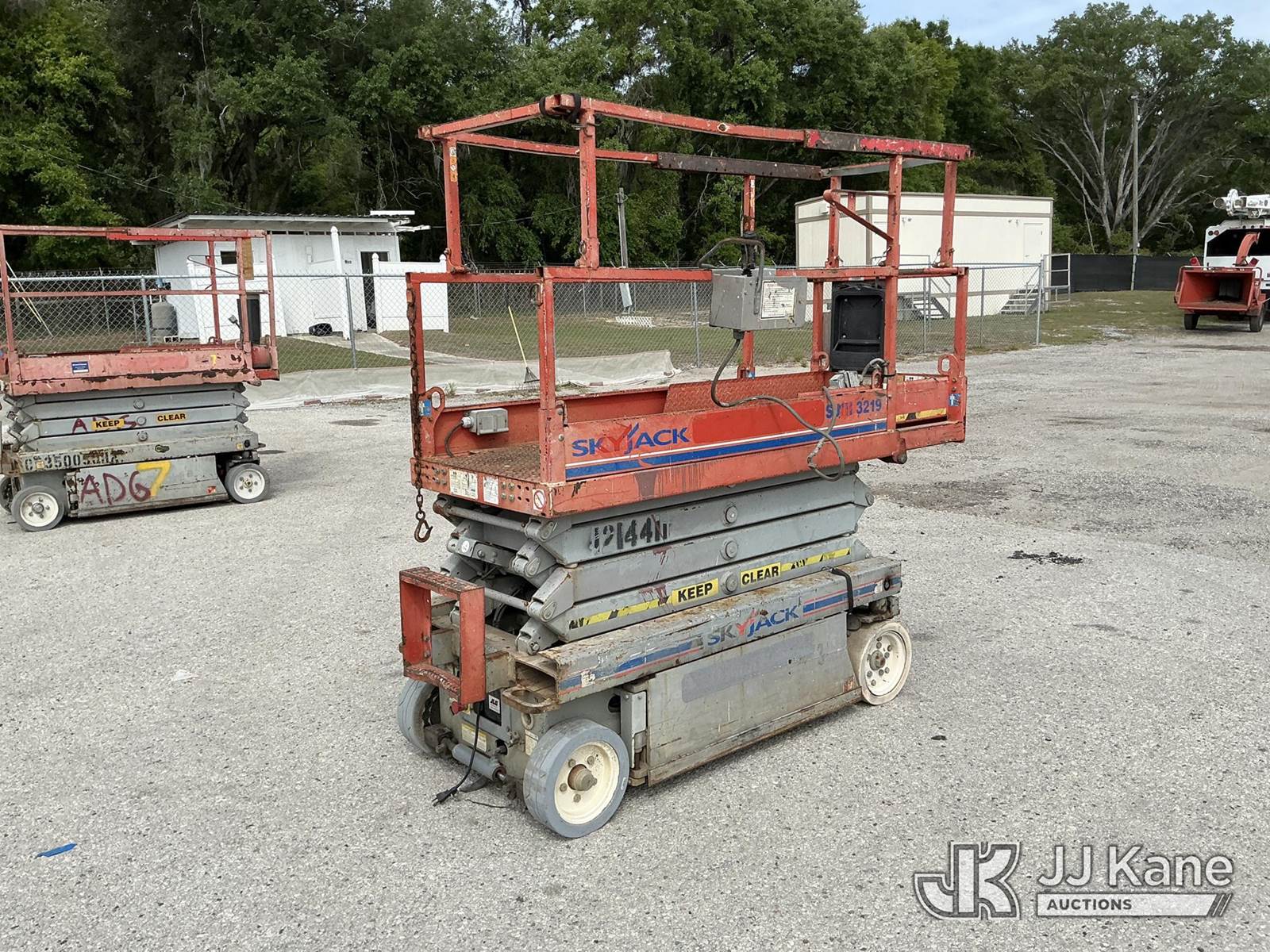 SkyJack 3219 Self-Propelled Scissor Lift, s/n 22025359, electric, Hydrostatic, (Moves & Operates)(Remote Inside Office) (Reads 292 hours) NOTE: This unit is being sold AS IS/WHERE IS via Timed Auction and is located in Thonotosassa, FL. Inspection & preview days for this unit are the 2 business days prior to the first day of items closing for this auction, item is located at 11720 N US 301 Thonotosassa, Fl 33592 and hours of operations are 8a-4p. For pre-sale questions, please contact Office Staff @ (813) 986-2485. (Buyer is responsible for removal. Assistance by consignor or JJ Kane Auctions is not assured.)