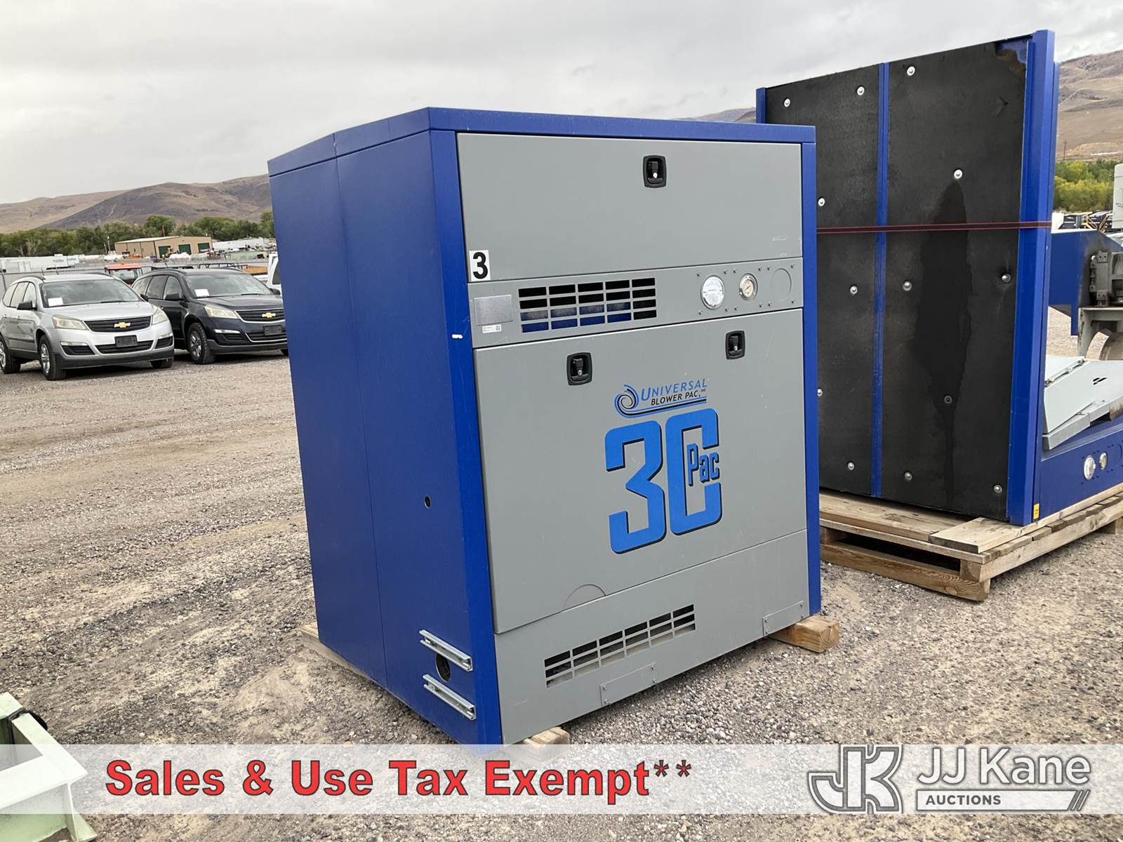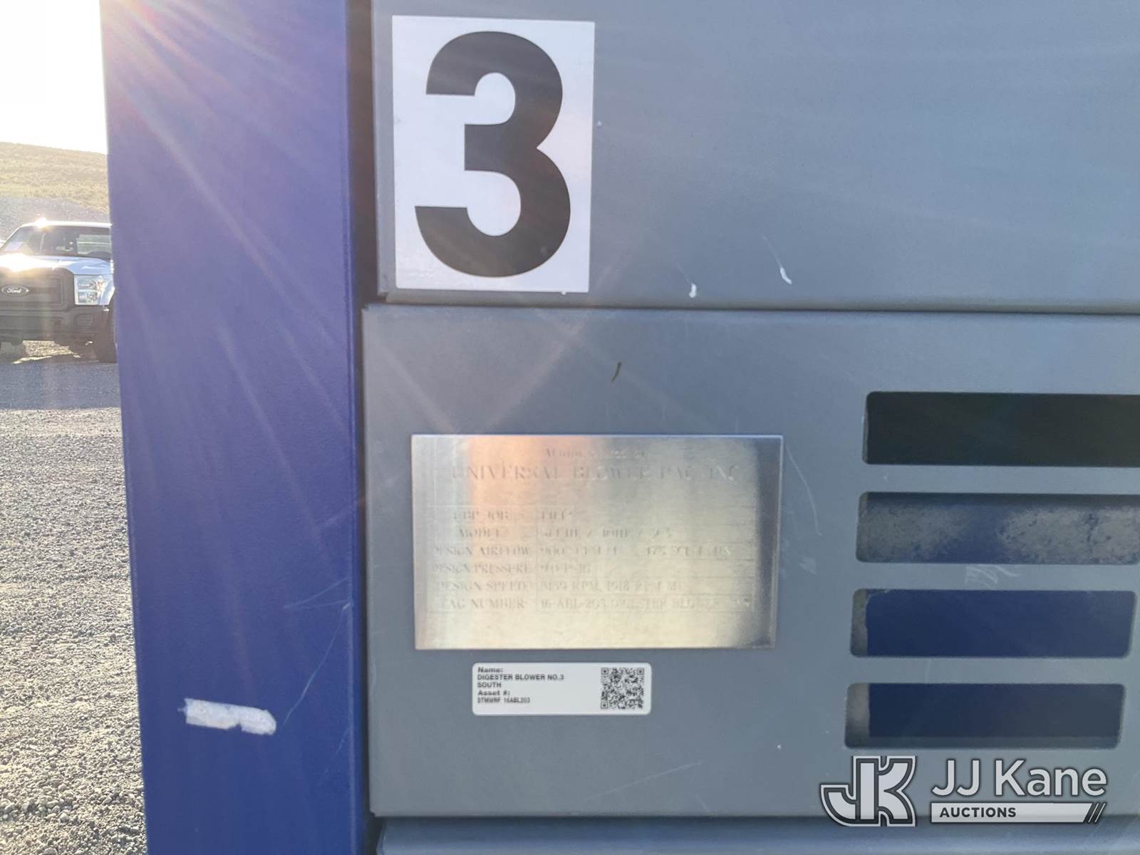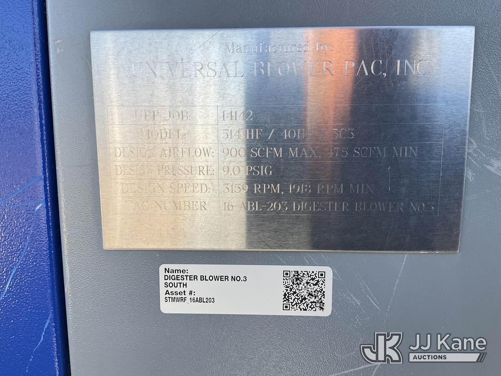 s/n 14142-1417-03, "Universal Blower - Positive Displacement Blower - 75 HP, 460V, 3-phase" (Seller States Condition "Good") NOTE: This unit is being sold AS IS/WHERE IS via Timed Auction and is located in Sparks, NV. Inspection & preview days for this unit are the 2 business days prior to the first day of items closing for this auction, item is located at 601 Britain Dr Sparks, NV 89437 and hours of operations are 8a-4p. Titles executed exactly as bidder registered. Ensure your name and/or business name and address in JJ Kane and/or ProxiBid is correct before bidding. For pre-sale questions, please contact Office Staff @ (801) 519-0123 and provide sale date and lot number. Sparks Dealer License Number DLR000052908 / OHV000052909. (Buyer is responsible for removal. Assistance by consignor or JJ Kane Auctioneers is not assured.)