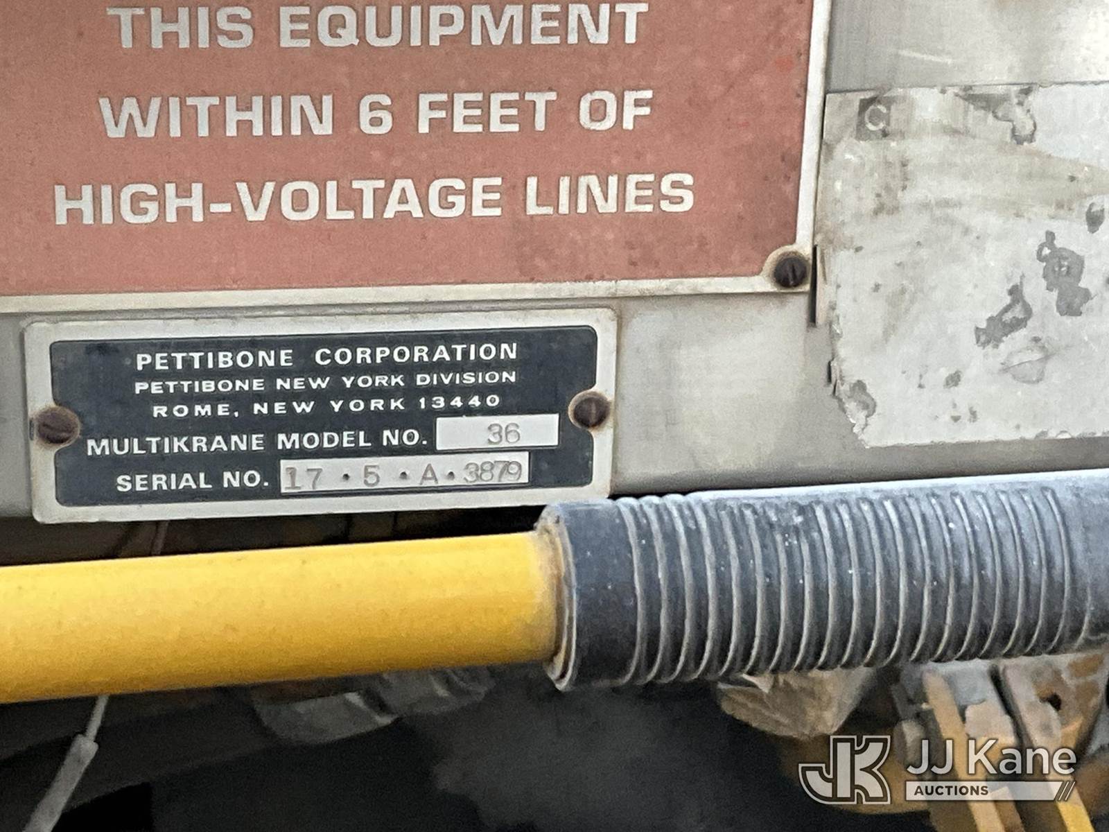 s/n 175A3879, with 38,000lbs capacity, hook block, Pettibone Multikrane Model 36 (Not Running, Condition Unknown, Hydraulic Leaks at Outriggers) (Reads 6,896 hours) NOTE: This unit is being sold AS IS/WHERE IS via Timed Auction and is located in Tulsa, OK. For more information & removal arrangements please contact Ben Cox @ (572) 235-0552. (Buyer is responsible for removal. Assistance by consignor or JJ Kane Auctions is not assured.)