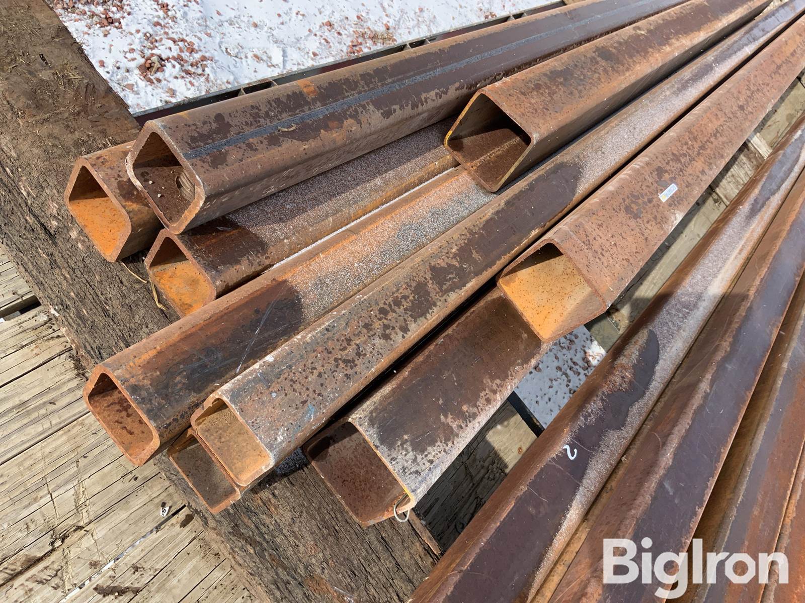 Square Tubing, (9) total pieces, Ranging from 8’ to 24’ long, (4) 4”x4”x3/8”, (2) 3.5”x3.5”x1/4”x17’ long, (1) 5”x5”x 8’ long, (1) 5”x5”x17’ long, (1) 5”x5”x24’ long