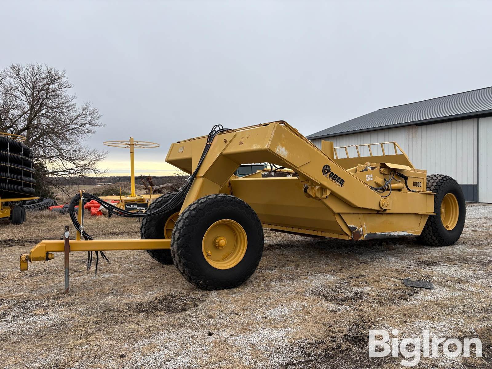 Steiger Toreq 18 YD Forced Ejection Pull-Type Scraper, Pin Hitch, Swivel Hitch, Adjustable Jack Stand, (3) Hydraulics, 114” Cutting Width, Hydraulic Raise/Lower, Hydraulic Gate Control, Firestone 18.4-26 Front Dolly Tires, Firestone 24.5-32 Rear Tires, 18 Yard Capacity, 17,500 lbs, Overall Length: 396”, Overall Width: 137”, Overall Height: 99”, *Open House/Equipment Inspection Day Being Held Monday, March 16th 10:00am-2:00pm @ 72568 634 Ave, Auburn, NE, 68305 (5 miles west & 3.5 miles south of Auburn, NE), SN: 18-3332