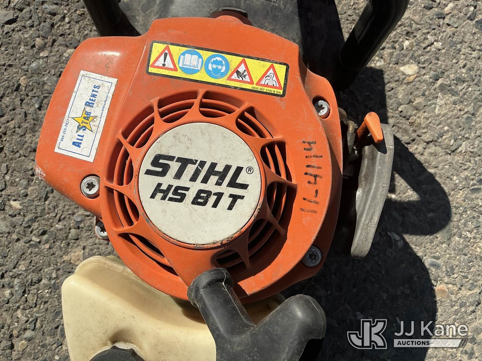 Stihl HS81T (Used, Not Running, Missing Parts) NOTE: This unit is being sold AS IS/WHERE IS via Timed Auction and is located in Dixon, CA. Inspection & preview days for this unit are the 2 business days prior to the first day of items closing for this auction, item is located at 8668 Sparling Ln Dixon, CA 95620 and hours of operations are 8a-4p. For pre-sale questions, please contact JJ Kane Staff at (707) 678-8060 (dixon@jjkane.com). Dealer License Number 45696. (Buyer is responsible for removal. Assistance by consignor or JJ Kane Auctions is not assured.)