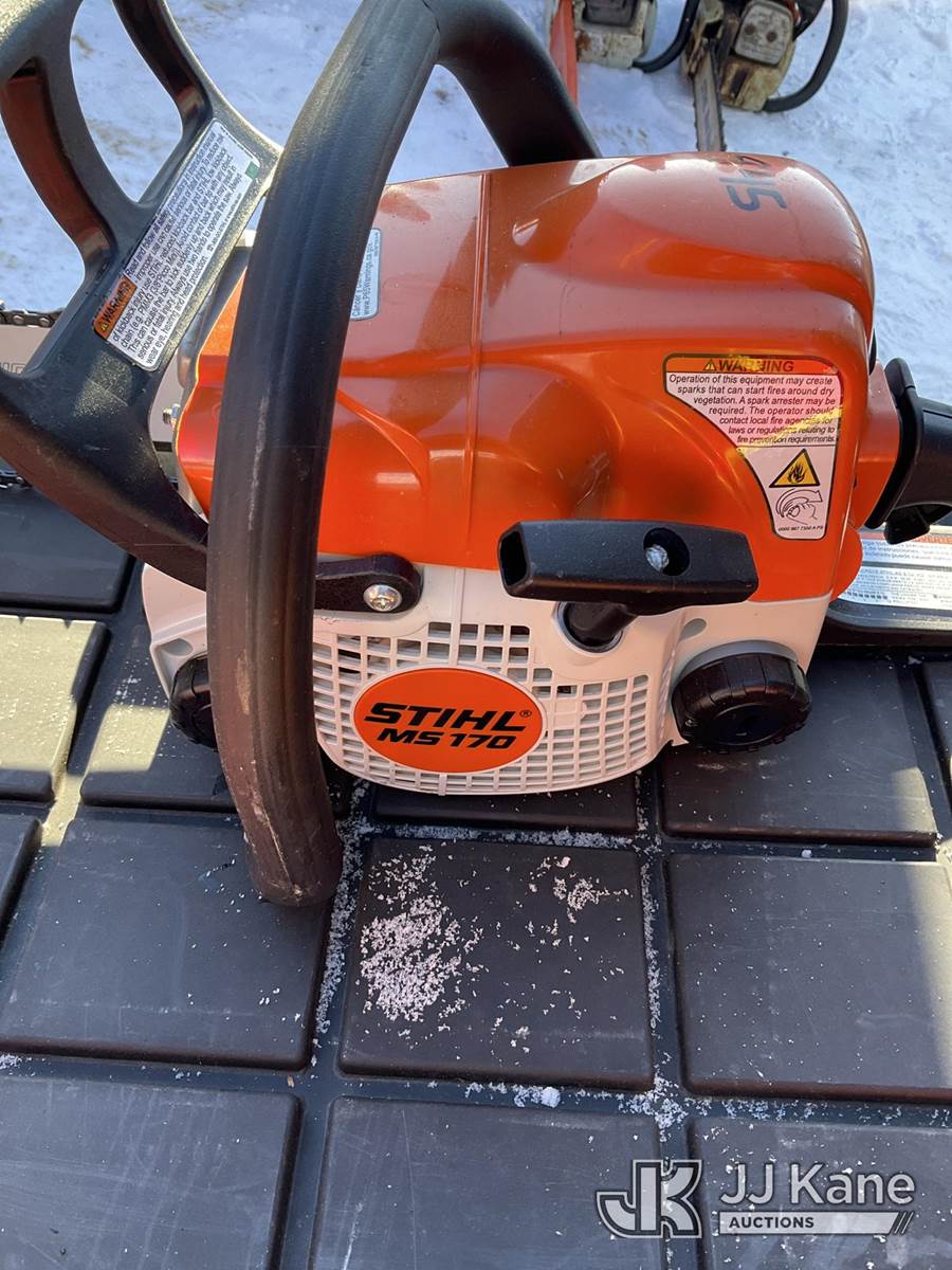 Stihl MS170 Chainsaw, Fuel Can & PPE Kit (Unit Untested) NOTE: This unit is being sold AS IS/WHERE IS via Timed Auction and is located in Rome, NY. Inspection & preview days for this unit are the 2 business days prior to the first day of items closing for this auction, item is located at 5835 Success Dr Rome, NY 13440 and hours of operations are 8a-4p. For pre-sale questions, please contact Ryan Jackson @ (315) 749-3790 or Ryan.Jackson@jjkane.com. (Buyer is responsible for removal. Assistance by consignor or JJ Kane Auctions is not assured.)