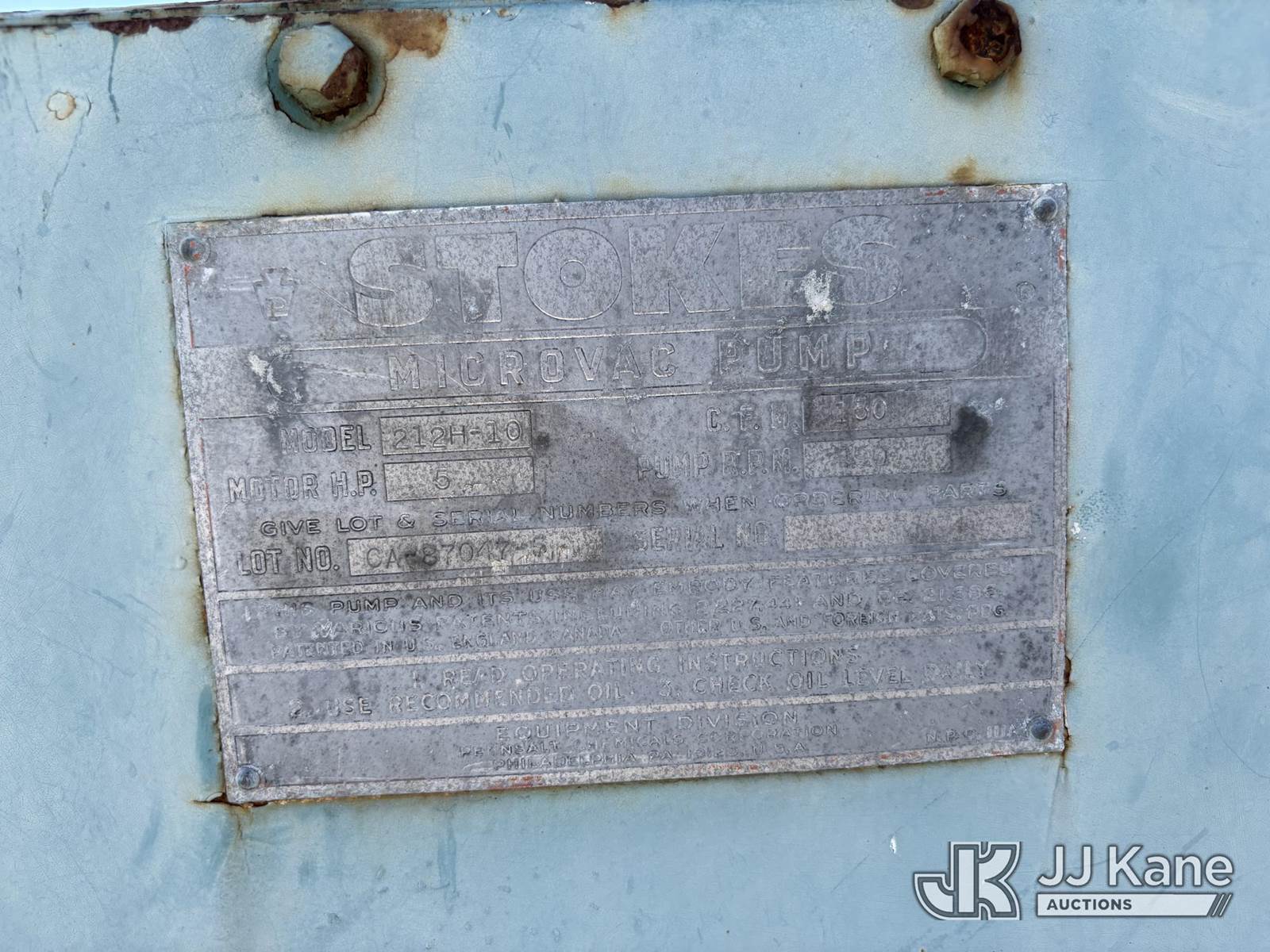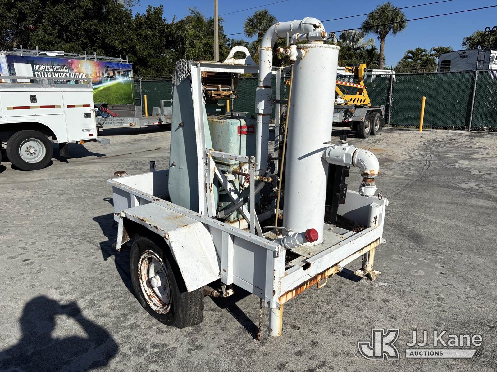 Stokes S/A Pump Trailer, (No Title) (Not Running, Condition Unknown, Flat Tires, Body & Paint Damage) NOTE: This unit is being sold AS IS/WHERE IS via Timed Auction and is located in Riviera Beach, FL. An inspection day for FPL auction items will be conducted on the Friday before the auction from 8a-3p at 2455 Port West Boulevard, Riviera Beach, FL 33407. Winning Buyer/Hauler must present copy of paid invoice upon arrival to pick up. For load out and pick up information, please reference the release form sent out after purchase. Any more information please call Andy Garcia @ 561-215-0085. (Buyer is responsible for removal. Assistance by consignor or JJ Kane Auctions is not assured.)
