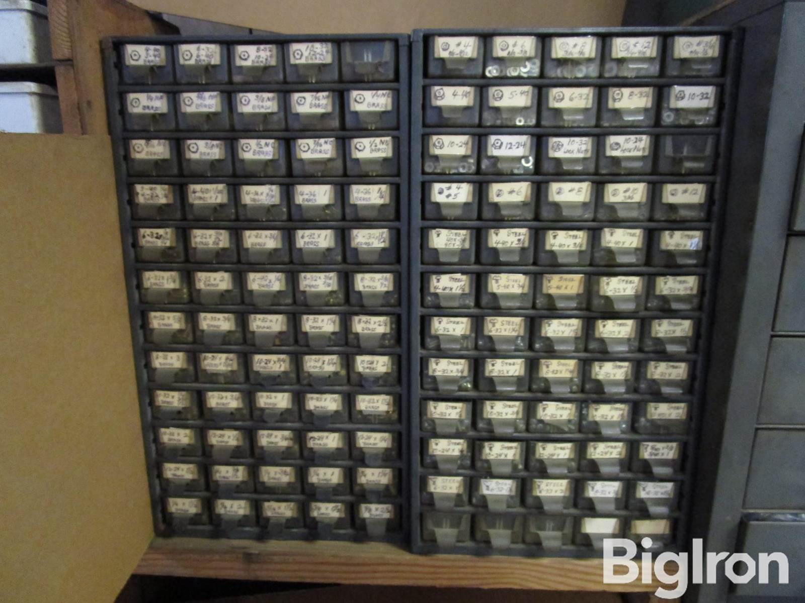 Stove Bolt Assortment of Brass, Steel, & Cabinets, BRASS: 4-40 to 3/8 x 2 1/2", Nuts, Flat Washers, Lock Washers, NF and NC Nuts, NF..1/4" to 7/16", 4-40 to 5 - 40, NC Brass Nuts 1/4" to 1/2" STEEL: Flat Washers #4 to 3/16", Nuts 4-40 to 12-4, Lock Nuts 10-32 and 10-24, Lock Washers #4 to #12, Bolts 40x3/8 to 10/32 x 1 1/2"