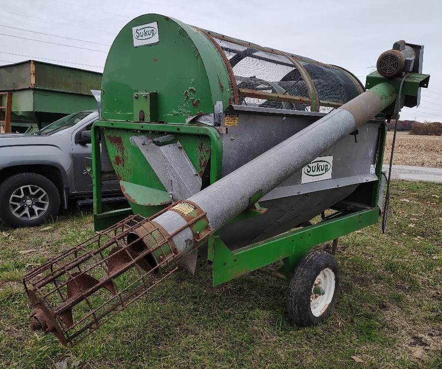 Sukup 48 Grain Cleaner, Drum Is 48 inches In Diameter, 7 ft. Long, Drum Is Runs On A Chain And Sprocket System, Powered By A 2 HP Leeson Electric Motor, Auger Is Powered By 2 HP Baldor Motor, Machine Also Comes With An Auger Guard Not Shown