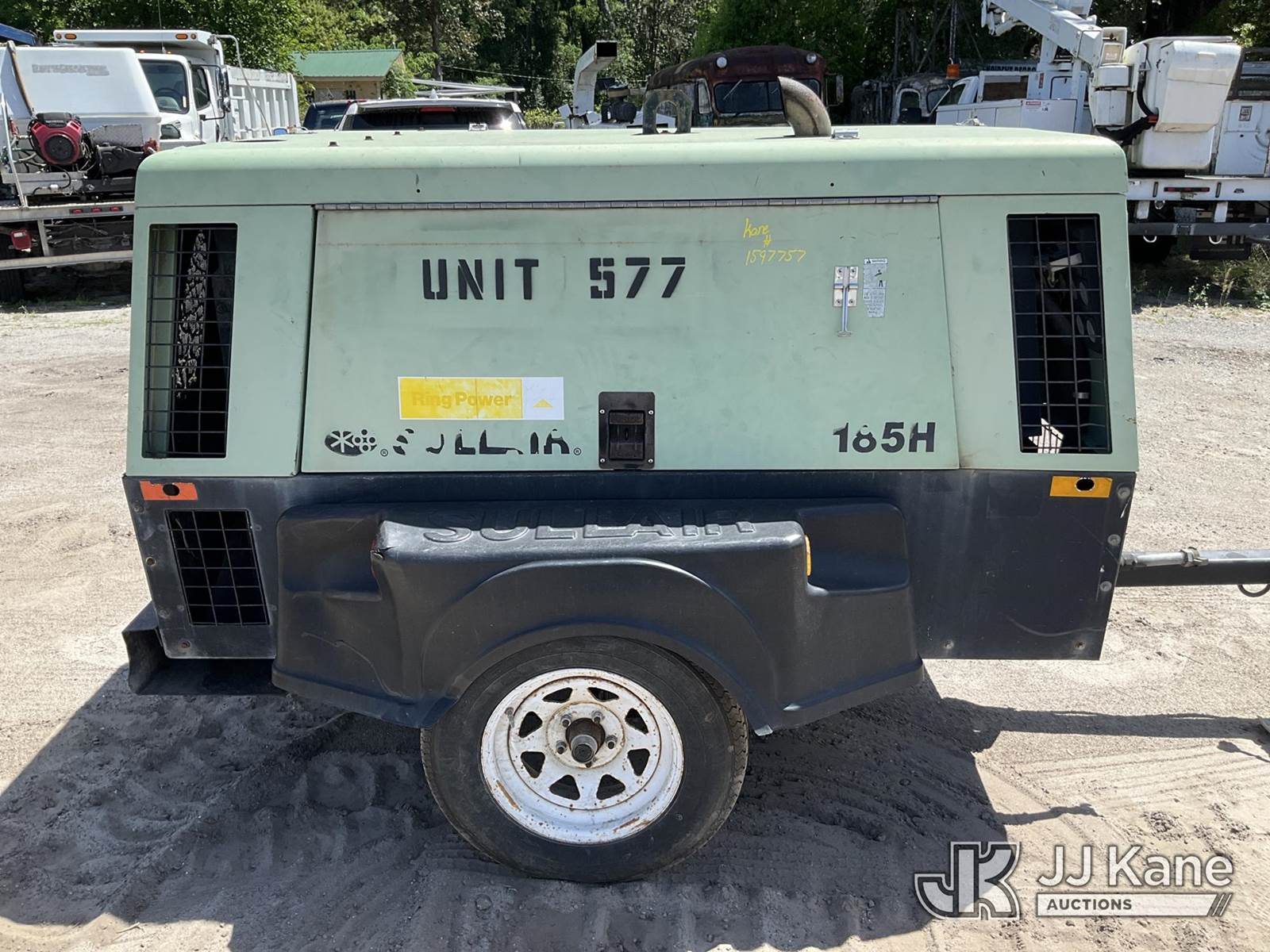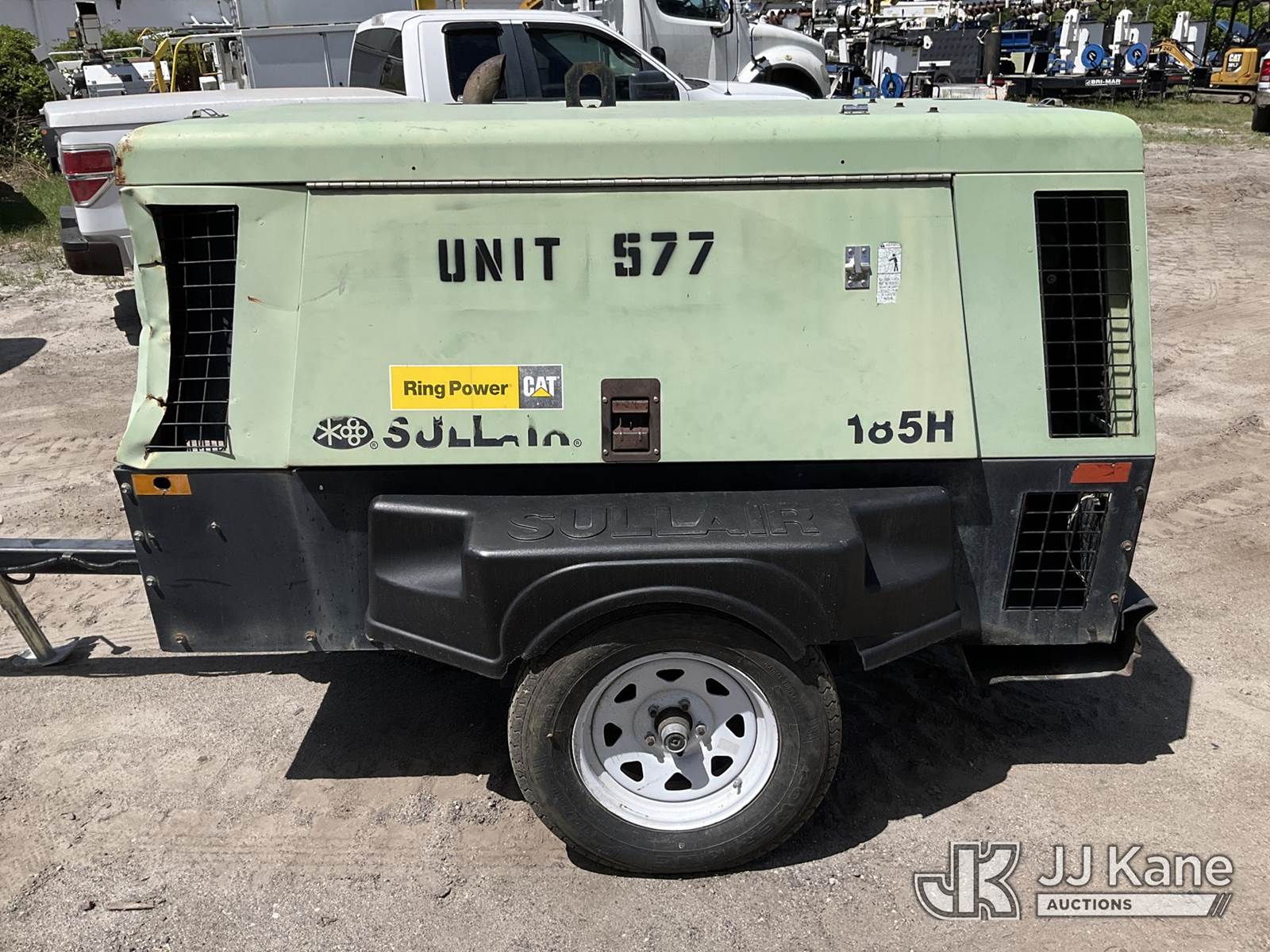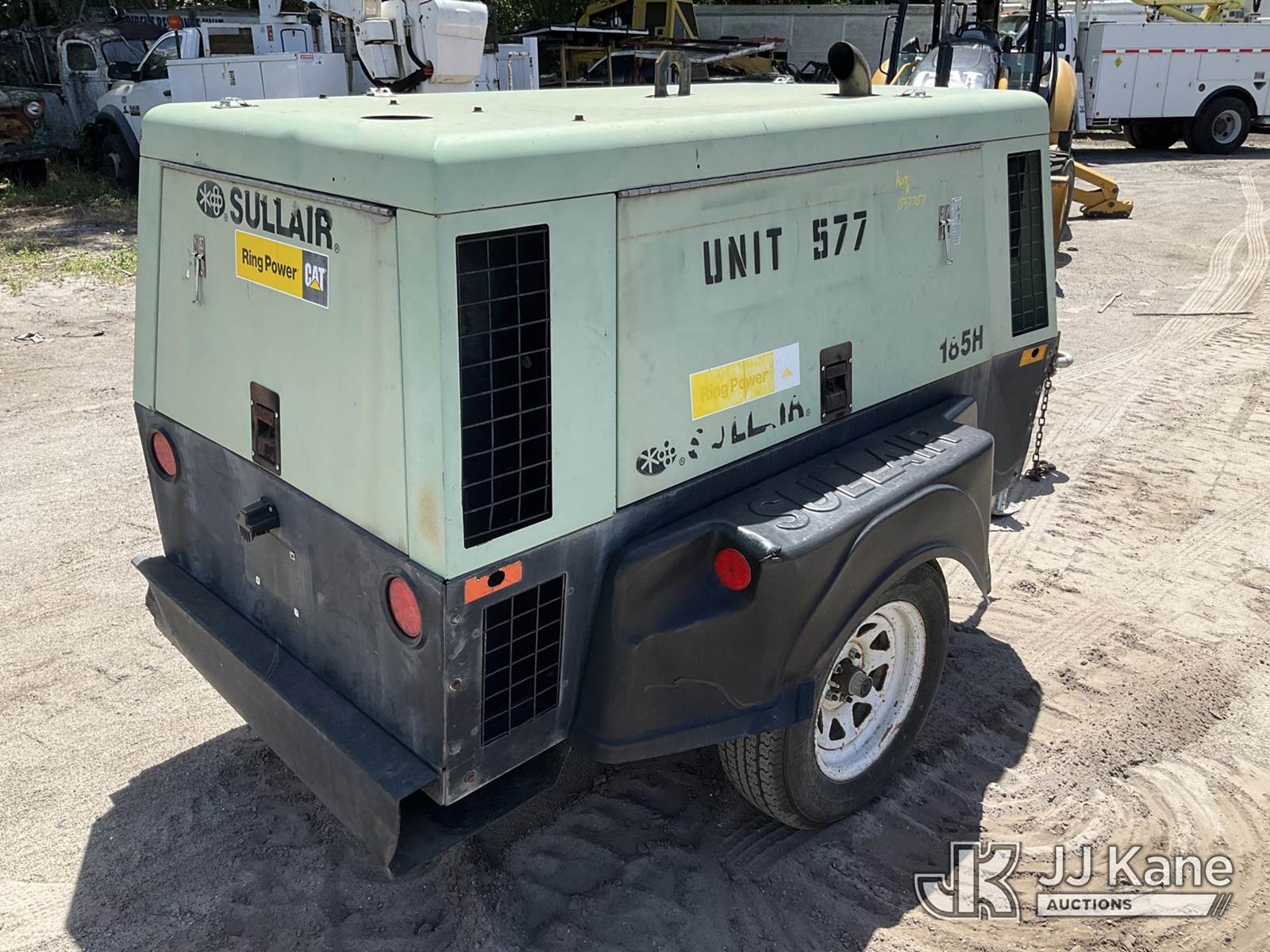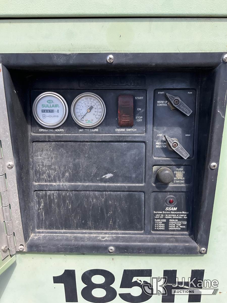 Sullair 185H-JD 185 cfm Portable Air Compressor, s/n 004-147546, J.D. diesel, trailer mtd. (No Title) (Not Running, Condition Unknown) (Reads 1,861 hours) NOTE: This unit is being sold AS IS/WHERE IS via Timed Auction and is located in Ocala, FL. Inspection & preview days for this unit are by appointment only; please contact us at contact@jjkane.com or 84-Go-JJKane for more details. For more information & removal arrangements please contact Mike Lessard @ (352) 629-6677. (Buyer is responsible for removal. Assistance by consignor or JJ Kane Auctions is not assured.)