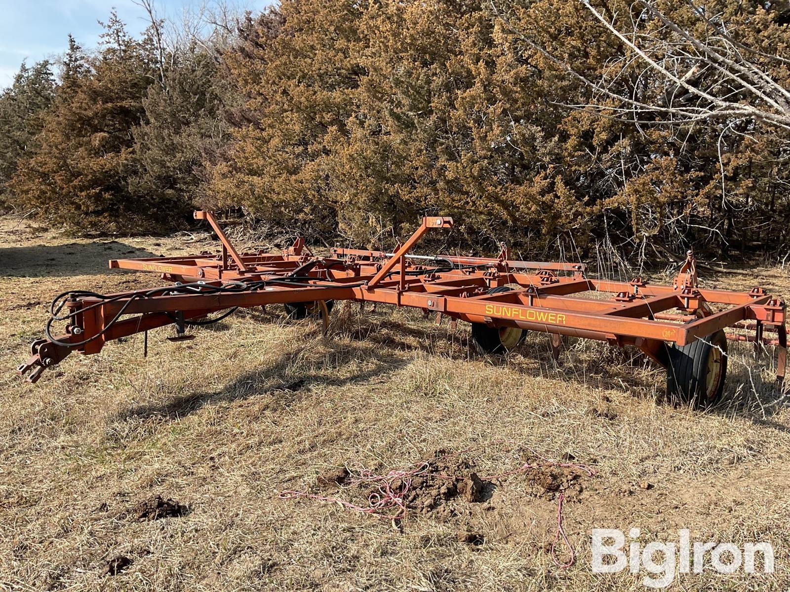 Sunflower FC-24 Chisel Plow w/Harrow, 24’ working Width, 3 Bar Noble Harrow, 18" Wide Sweeps, Hydraulic Lift, Hydraulic Fold, 9.5-15 Tires, SN: 76530
