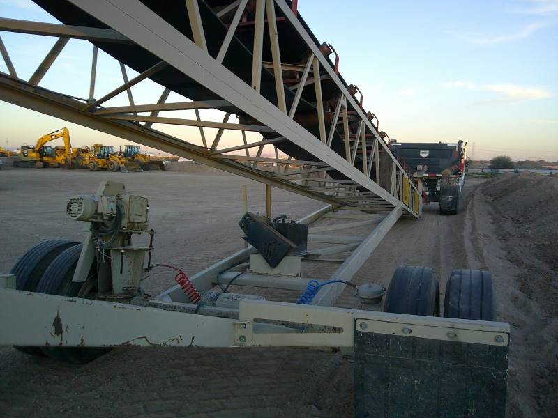 80' length, 22 degree high angle stockpiling, protable "groundline" overland folding system for single towable load. 500' longw?36" belt width, 750 STPH capacity. 80' conveyor length, 30" deep truss fixed frame. 30 HP TEFC electric motor. 400FPM operating speed, fifth wheel hitch