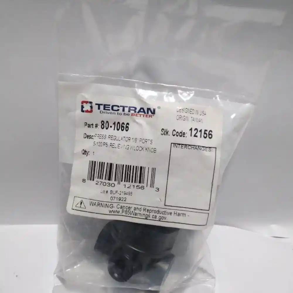 Tectran 80-1066 Abs Pressure Relief Valve Panel Mount 1/8 Ports Tectran 80-1066 is designed for heavy-duty transportation equipment (truck & trailer air systems). It is used as a panel-mount relieving-type pressure regulator with 1/8" NPT ports, commonly installed in: Tractor air brake systems Trailer air brake systems Air accessory circuits Pressure-regulated air control panels Part Specifications Ports: (4) 1/8" NPT Max Input Pressure: 300 psi Regulating Range: 5 120 psi Mount: Panel mount Cross-Reference TECTRAN 12156 TEC TEC801066, 80-1066TEC, TEC80-1066 U27801066 R1602000 AC047R, Core Charge: 0.00