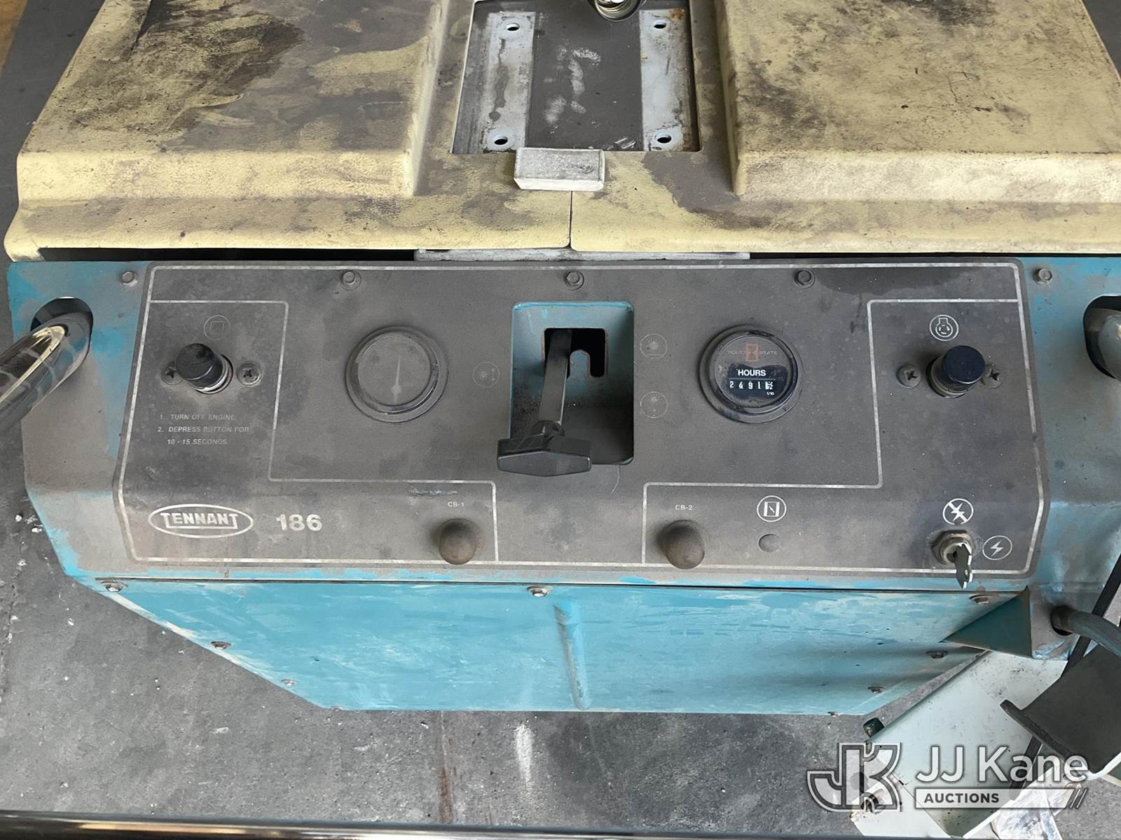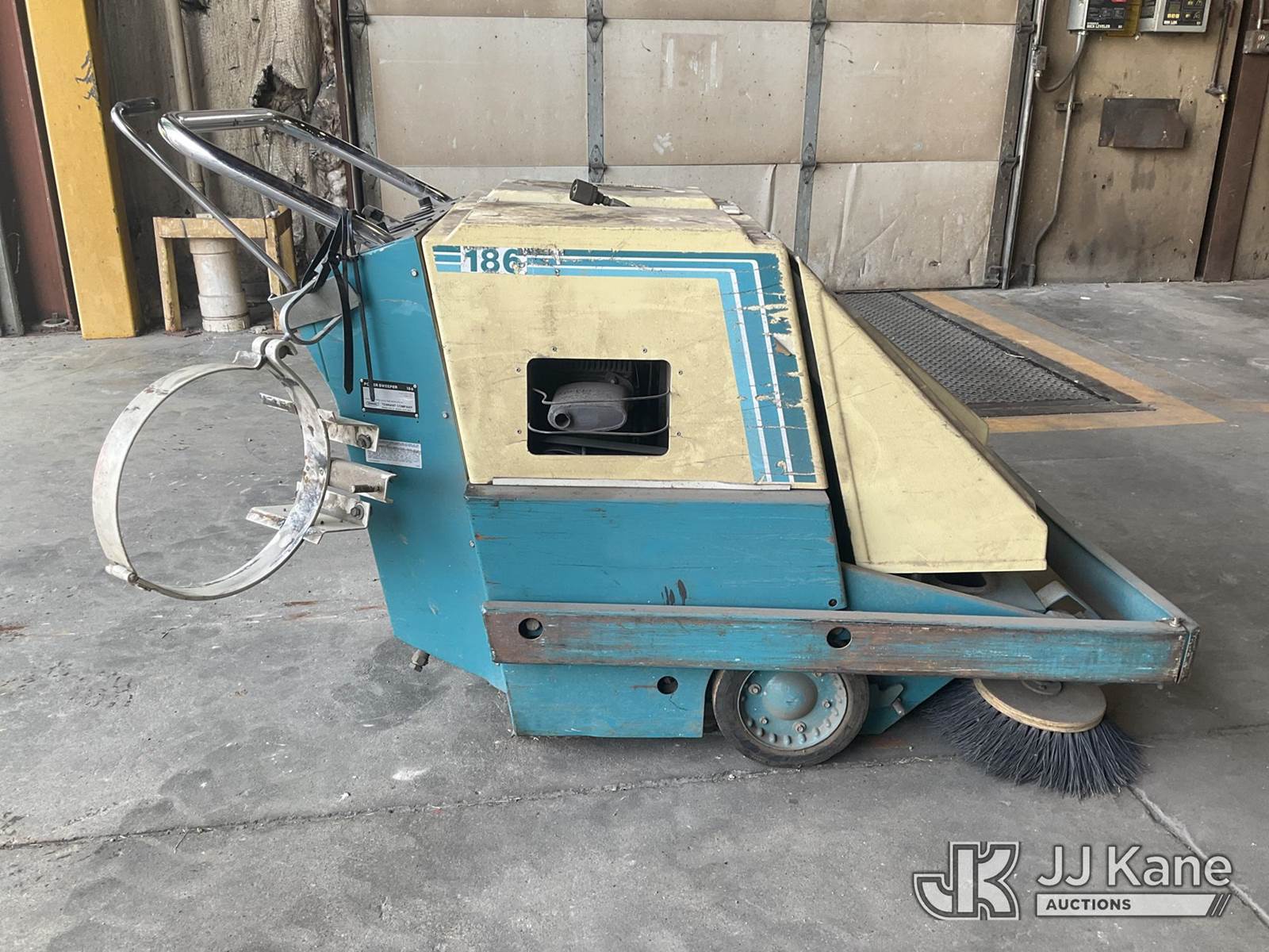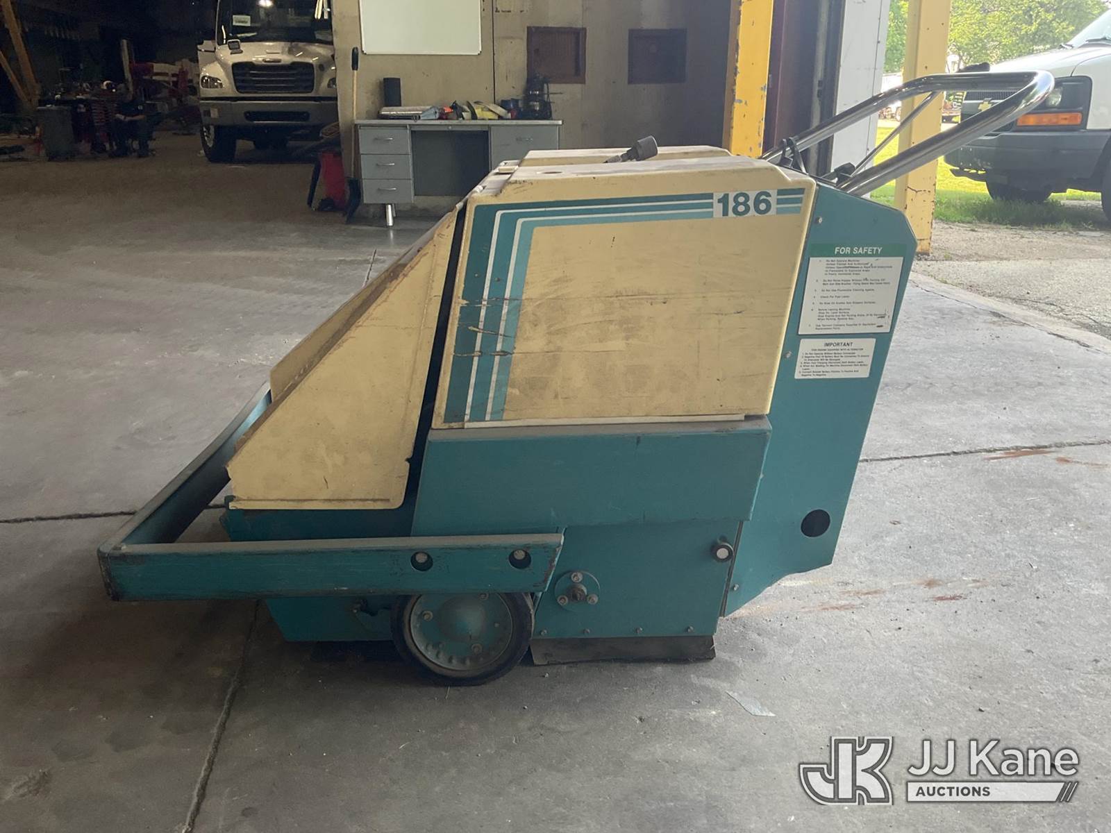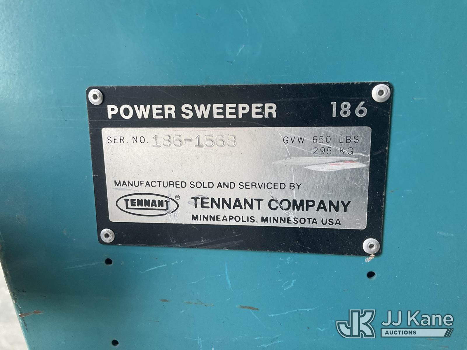 Tennant 186 Walk Behind Floor Sweeper, s/n 186-1568, 1-cyl LPG, (Not Running, Condition Unknown, Cranks, No Fuel, LP Tank Not Included) (Reads 2,491 hours) NOTE: This unit is being sold AS IS/WHERE IS via Timed Auction and is located in Neenah, WI. For specific technical information or questions about this item, contact Jeff Lawrence @ 920-215-6316. For load-out and pick information, reference the hauler sheet sent out after purchase. These items are used and may contain defects that are not immediately detectable. Text descriptions and photos given are meant to be used as a guide only. The conditions are provided by the consignor. The Buyer is responsible for inspecting the item before bidding. All information provided is believed to be correct but no warranty as such is either intended or implied. All items are sold AS IS - WHERE IS AND WITH ALL FAULTS AND DEFECTS THEREIN. (Buyer is responsible for removal. Assistance by consignor or JJ Kane Auctioneers is not assured.)