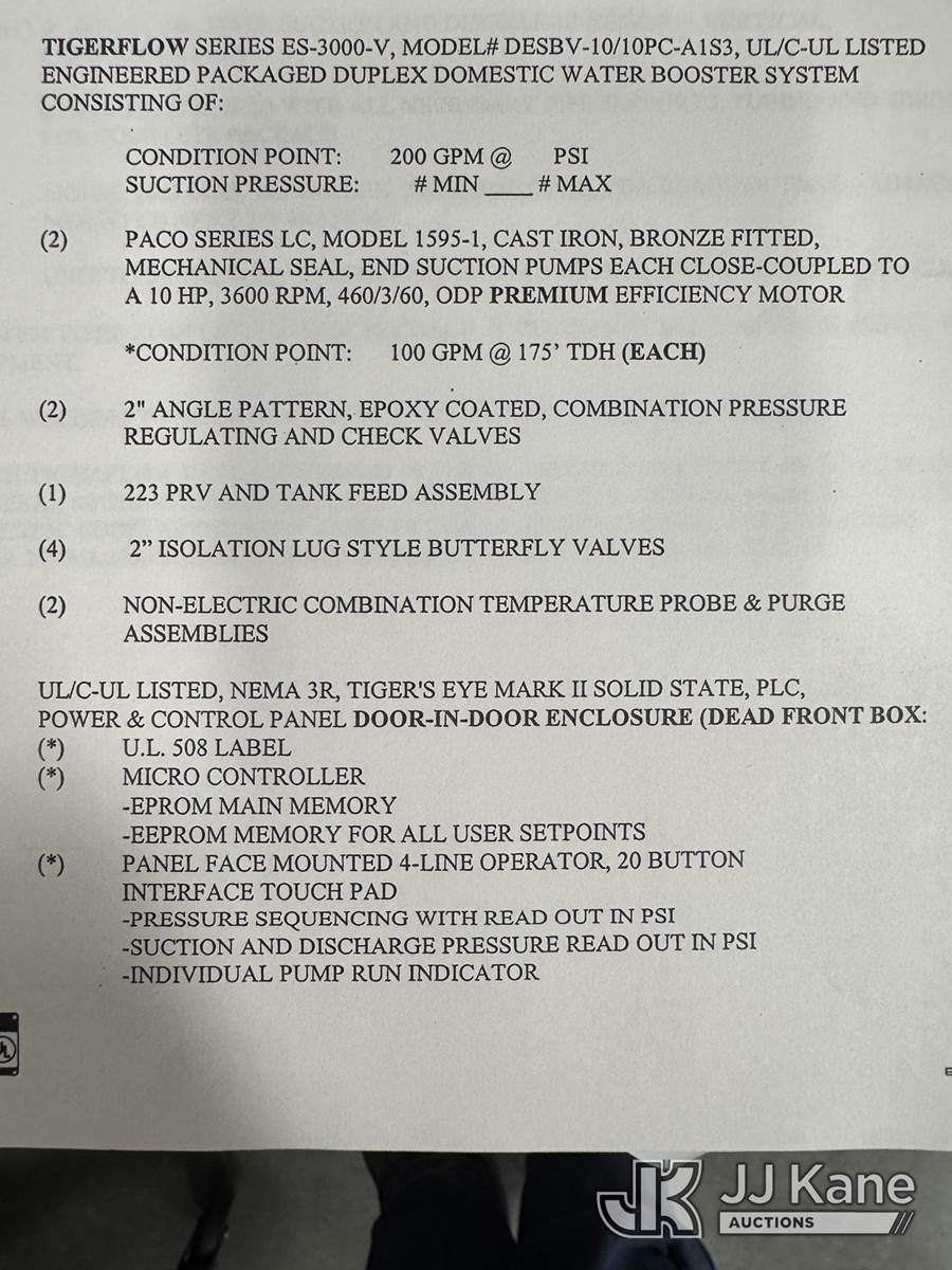 Tigerflow ES-3000-V Domestic Water Booster Pump NOTE: This unit is being sold AS IS/WHERE IS via Timed Auction and is located in Marana, AZ. For removal details, contact Carson Wenner at (480) 617-3620. (Buyer is responsible for removal. Assistance by consignor or JJ Kane Auctions is not assured.)