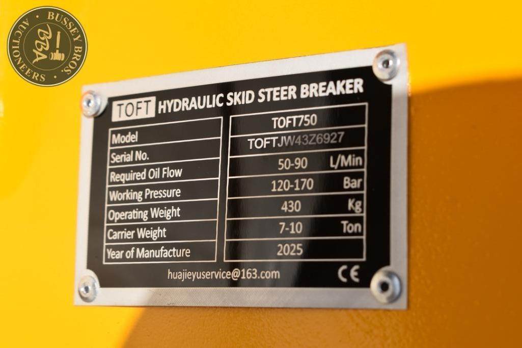 TOFT Breaker Attachment Skid Steer Mount, hydraulic, two breaker bits, charge cylinder, toolbox, SN#TOFTJW43Z6927, NEW/UNUSED