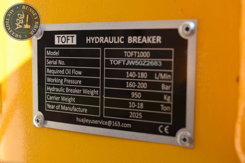 TOFT Breaker Attachment Fits 10-18 ton excavators, hydraulic, two breaker bits, charge cylinder, toolbox, SN#TOFTJW50Z2683, NEW/UNUSED