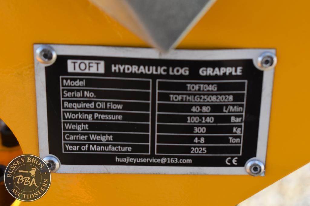 TOFT Grapple Attachment Fits 4-8 ton excavators, hydraulic, SN#TOFTHLG25082028, NEW/UNUSED