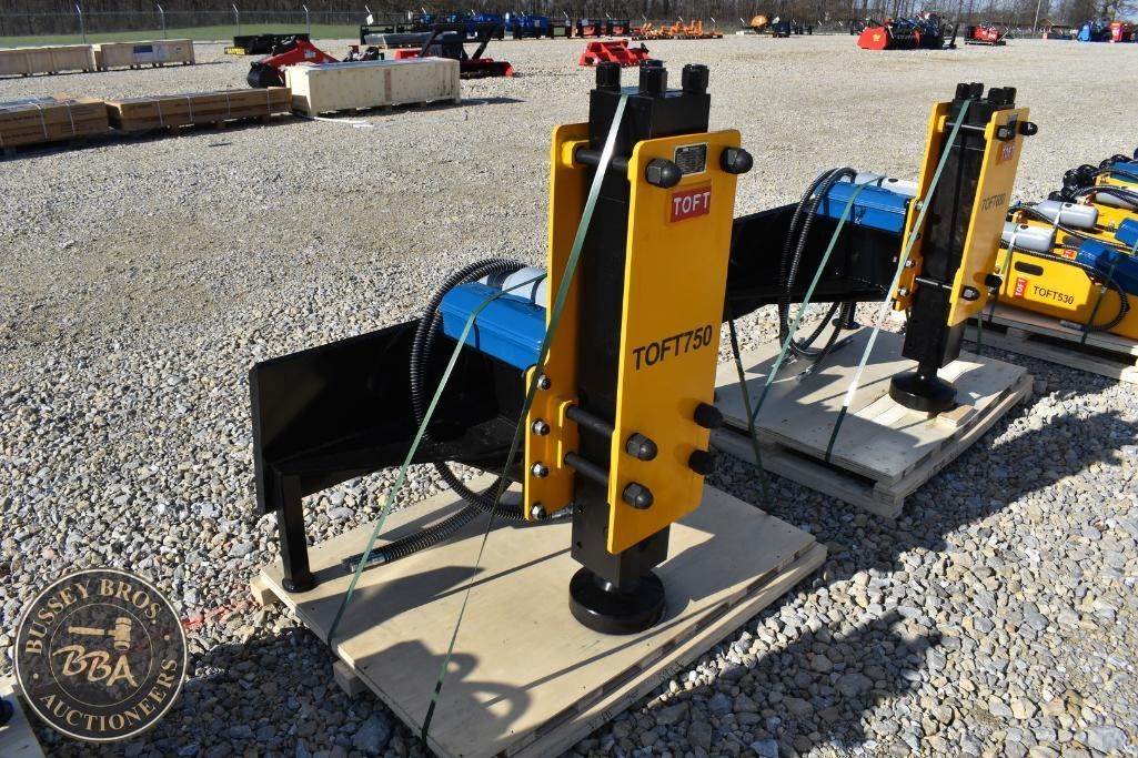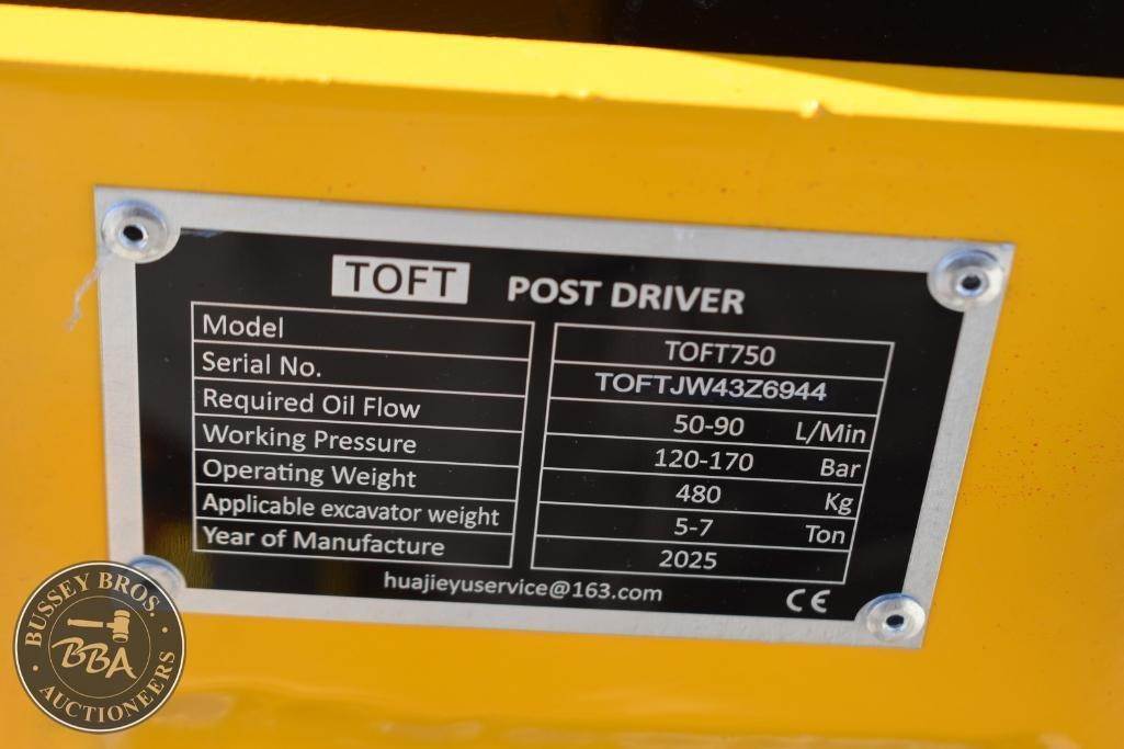 TOFT Post Driver Attachment Skid Steer Mount Hydraulic Post Driver, 5-7 ton, charge cylinder, toolbox, SN#TOFTJW43Z6944, NEW/UNUSED