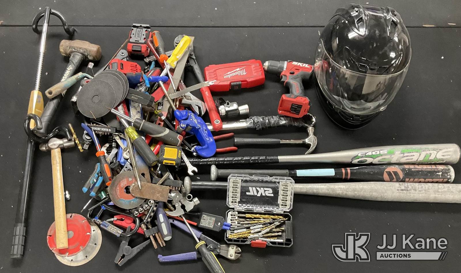 Tools, Baseball Bat, Motorcycle Helmet (Used) NOTE: This unit is being sold AS IS/WHERE IS via Timed Auction and is located in Jurupa Valley, CA. Inspection & preview days for this unit are the 2 business days prior to the first day of items closing for this auction, item is located at 4510 Muth Way Jurupa Valley, CA 92509 and hours of operations are 8a-4p. For pre-sale questions, please contact please contact Office Staff @ (310) 353-7140. Dealer License Number 45696. (Buyer is responsible for removal. Assistance by consignor or JJ Kane Auctioneers is not assured.)
