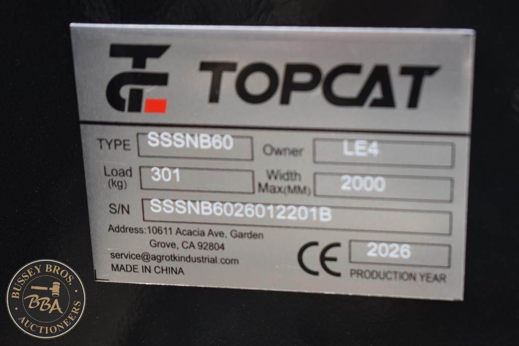 TopCat Skid Steer Snow Blower Attachment Skid Steer Mount, Hydraulic, SSSNB60, SN#SSSNB6026012201B, NEW/UNUSED