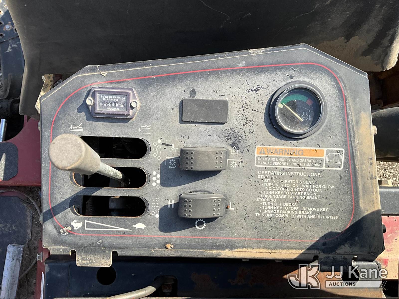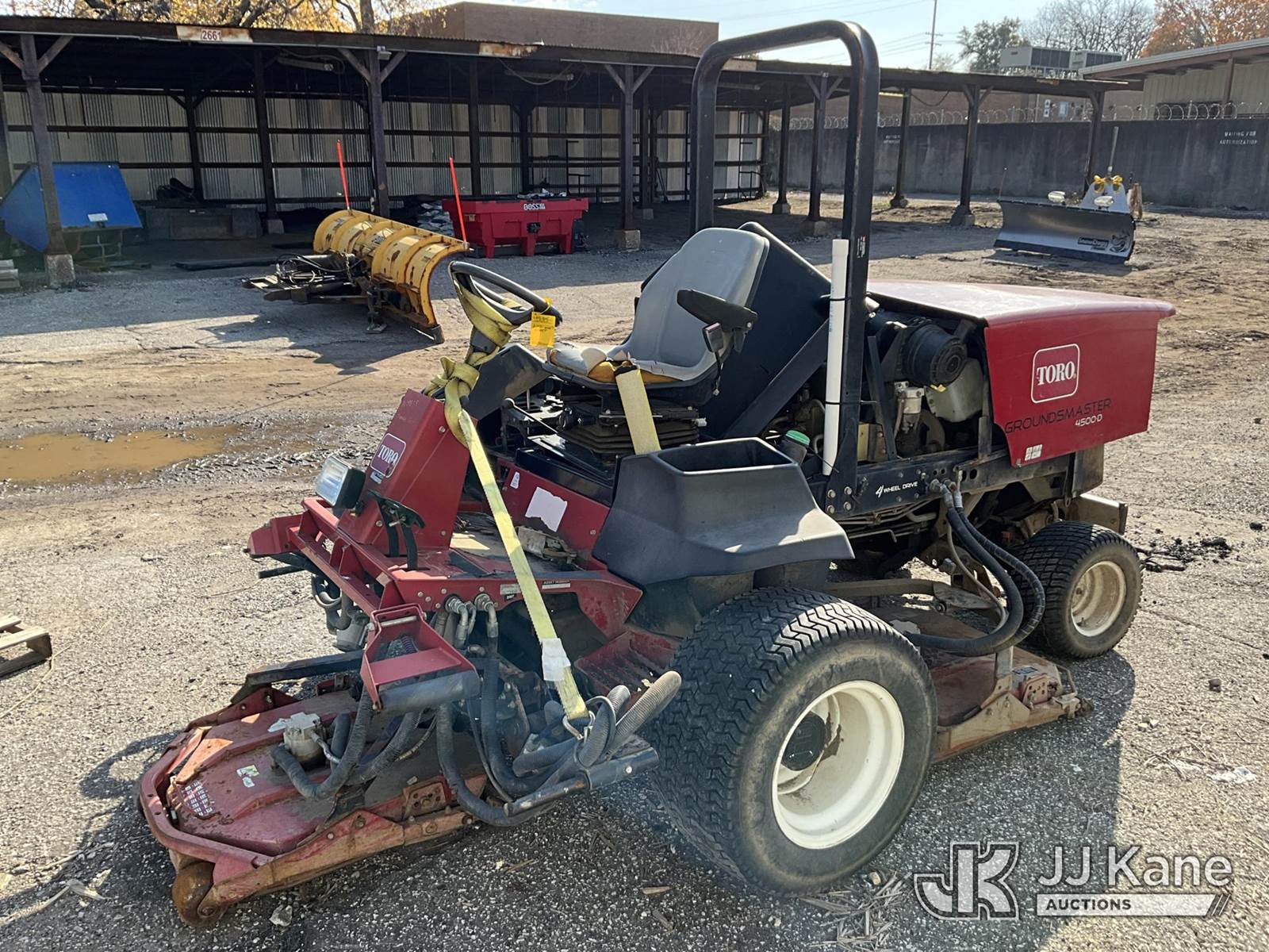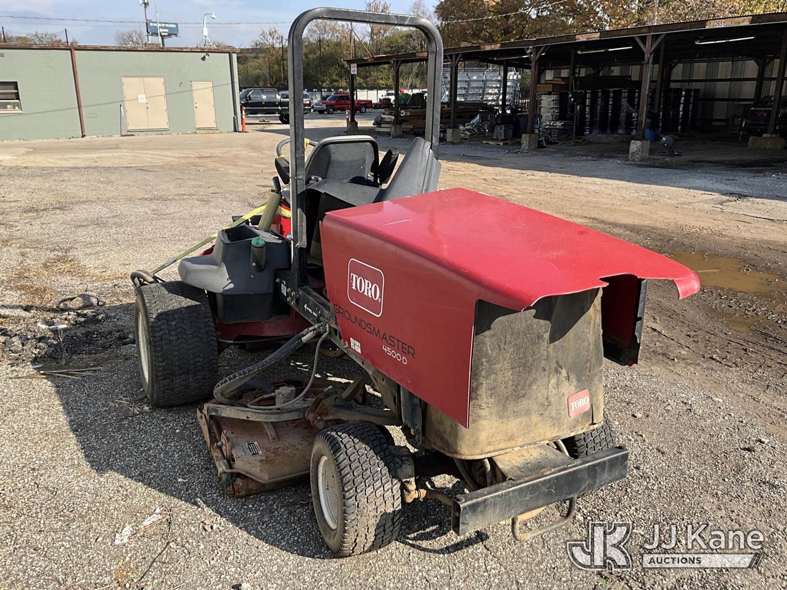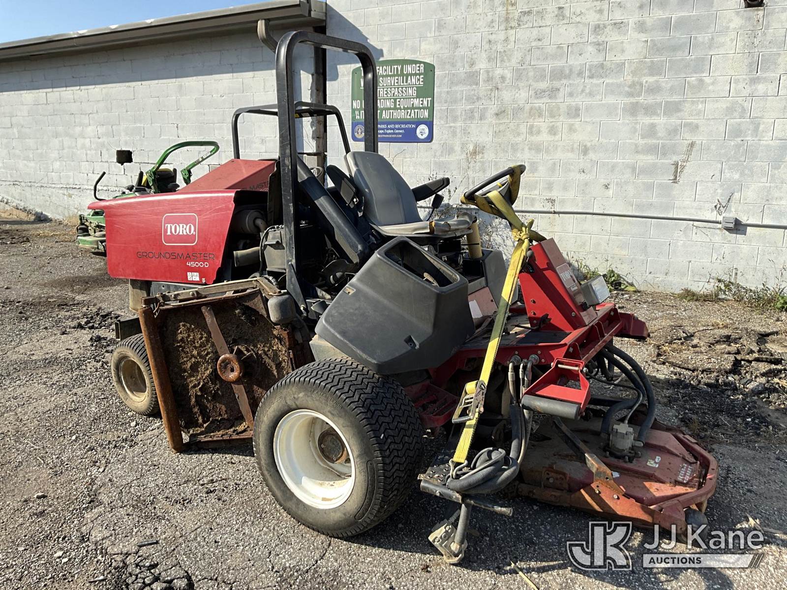 Toro Groundsmaster 4500D Riding Mower, s/n 30856-270000119, Hydrostatic, diesel, (Not Running, Condition Unknown) (Reads 6,416 hours) NOTE: This unit is being sold AS IS/WHERE IS via Timed Auction and is located in Louisville, KY. For more information & removal arrangements please contact Spencer Owen @ 502-232-2541. Load Out will be by appointment only M-F; must call 24 HRS. in advance. Buyer/Hauler must present copy of paid invoice upon arrival. Purchaser acknowledges ALL lots must be removed within 5 business days of Auction, or a storage fee may be incurred. This item is used and may contain defects that are not immediately detectable. Text description and photos given are meant to be used as a guide only. The conditions are provided by the consignor; you are responsible for inspecting item before bidding. All information provided is believed to be correct but no warranty as such is either intended or implied. All items are sold AS IS - WHERE IS AND WITH ALL FAULTS AND DEFECTS THEREIN. Auctioneer Michael Whitebread / License # 256617 (Buyer is responsible for removal. Assistance by consignor or JJ Kane Auctioneers is not assured.)