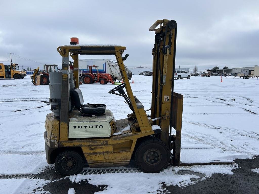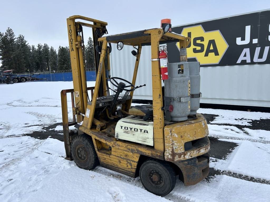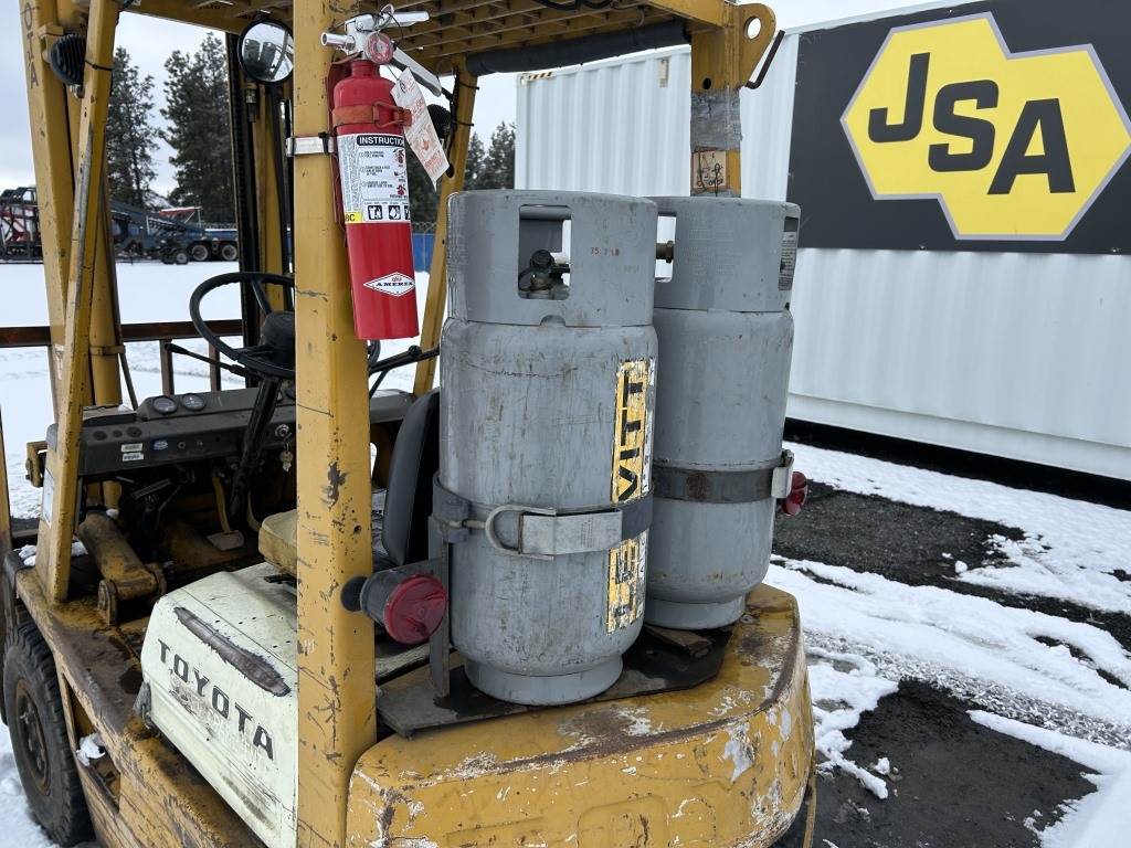 Location: Spokane WA ***City Government Surplus*** S/N: 40FG1821765 Engine: LP 42" Forks, 145" height, 3,000lb capacity, back tilt, side shift, 6.50-10 front tires, 5.00-8 rear tires. Hours: 5,435 indicated