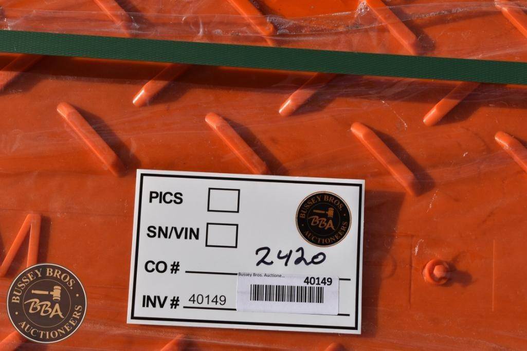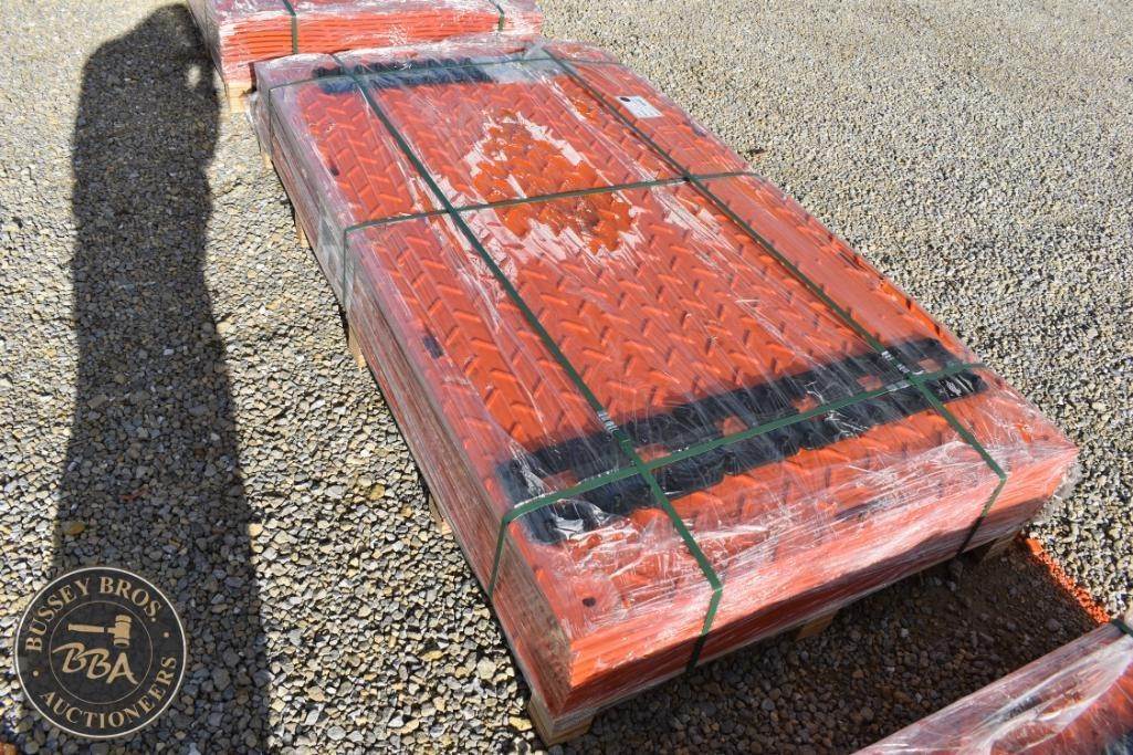 TPM Industrial Ground Protection Mats made from High-Density Polyethylene (HDPE), orange, dimensions: 7.3 ft x 4 ft x 0.5 in, weight per mat: 86 lbs, load capacity up to 80 tons, textured surface, interlocking lot contains 12 mats.