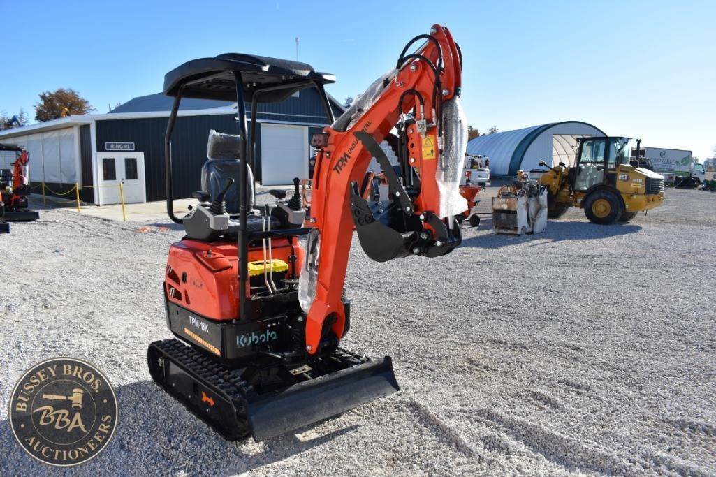 TPM TPM-18K Mini Excavator, 18 HP, 2200 lbs, includes rubber tracks, Kubota diesel engine, open ROPS, bucket attachment, grading blade, hydraulic thumb